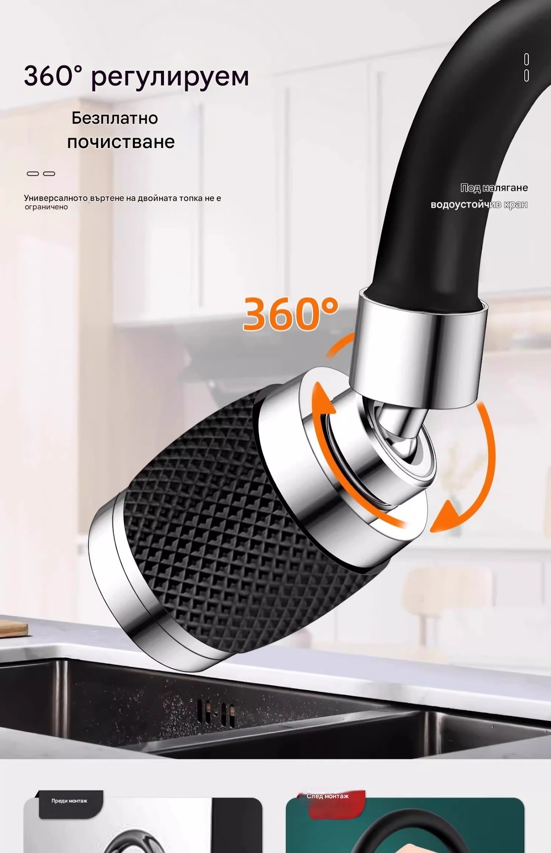 🔥💦 Универсален кухненски кран с филтър | Устойчив на пръски и повишава налягането