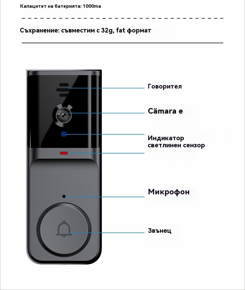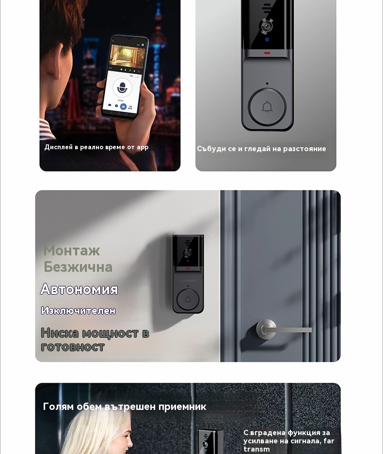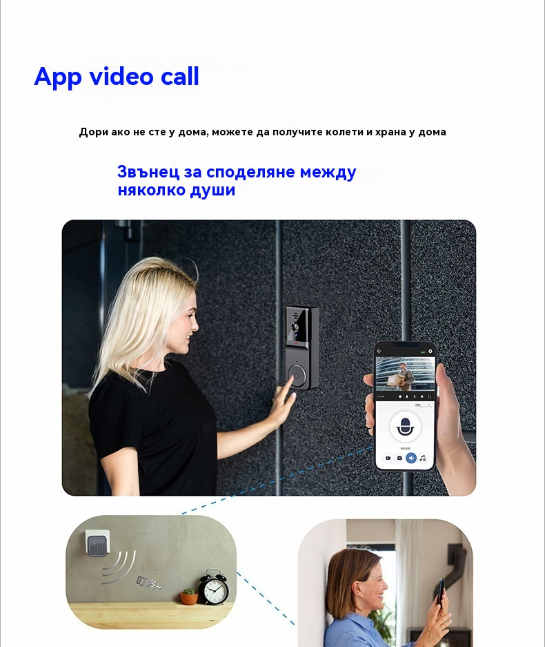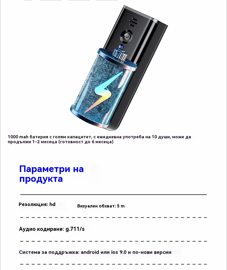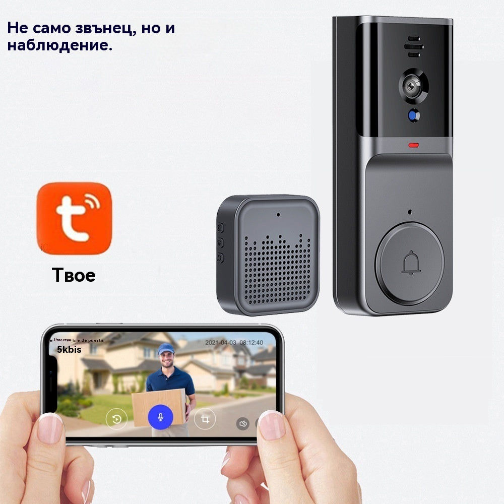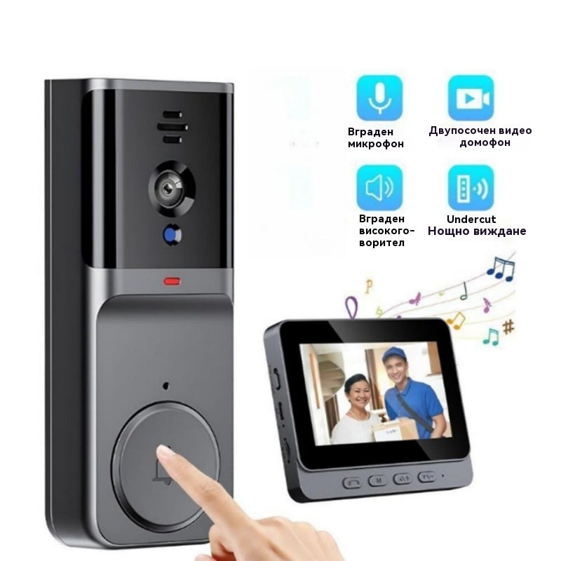 🔥 Безжична видеокамера за звънец: 1080P, ъгъл 170°, 4,3-инчов екран, външна защита IPX65, нощно виждане