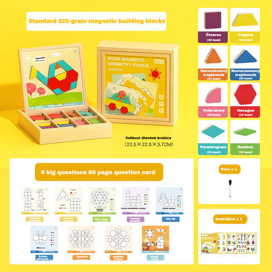 👶🌈🧩【225 dílků】🔥Magnetické dřevěné Tangram puzzle, trénink mozku a vzdělávací hračka pro děti, stimuluje myšlení