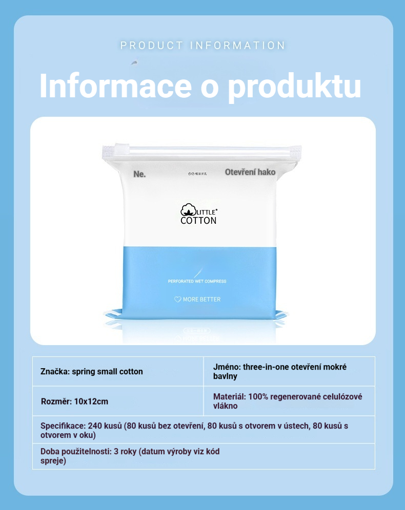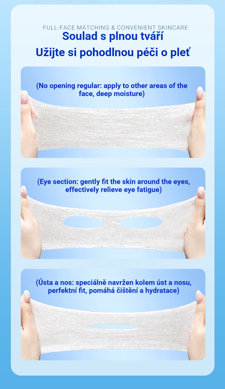 💆🧻🧴【150 kusů】Stižitelné bavlnené plátky speciálně pro obličej, trojité bavlnené kotouče s otvory pro oči, nos a ústa pro kompresy