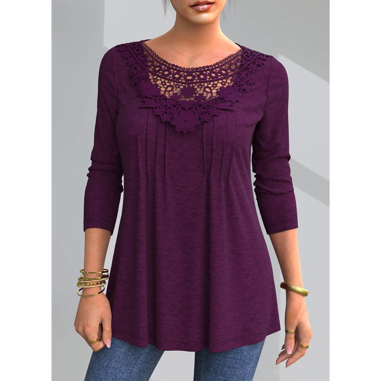 🔥🔥【S-5XL】Nové dámské módní tričko s dlouhým rukávem a vykrojenou krajkou ✅Dobírka