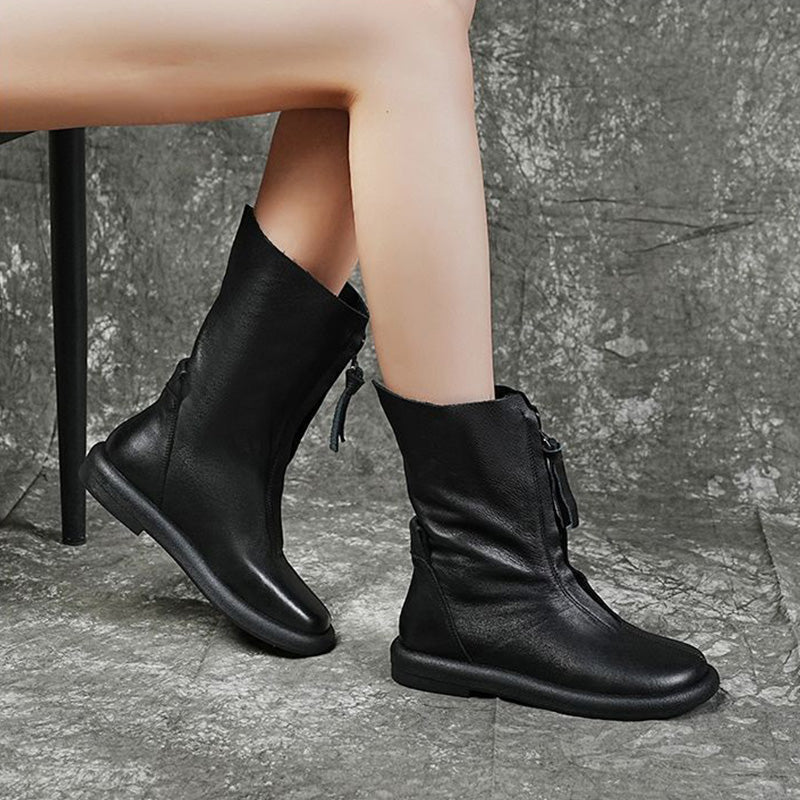 🔥【35~40】Ručne vyrábané talianske kožené čižmy Pohodlné čižmy z pravej kože s mäkkou podrážkou na plochom podpätku do polovice lýtok 3814152