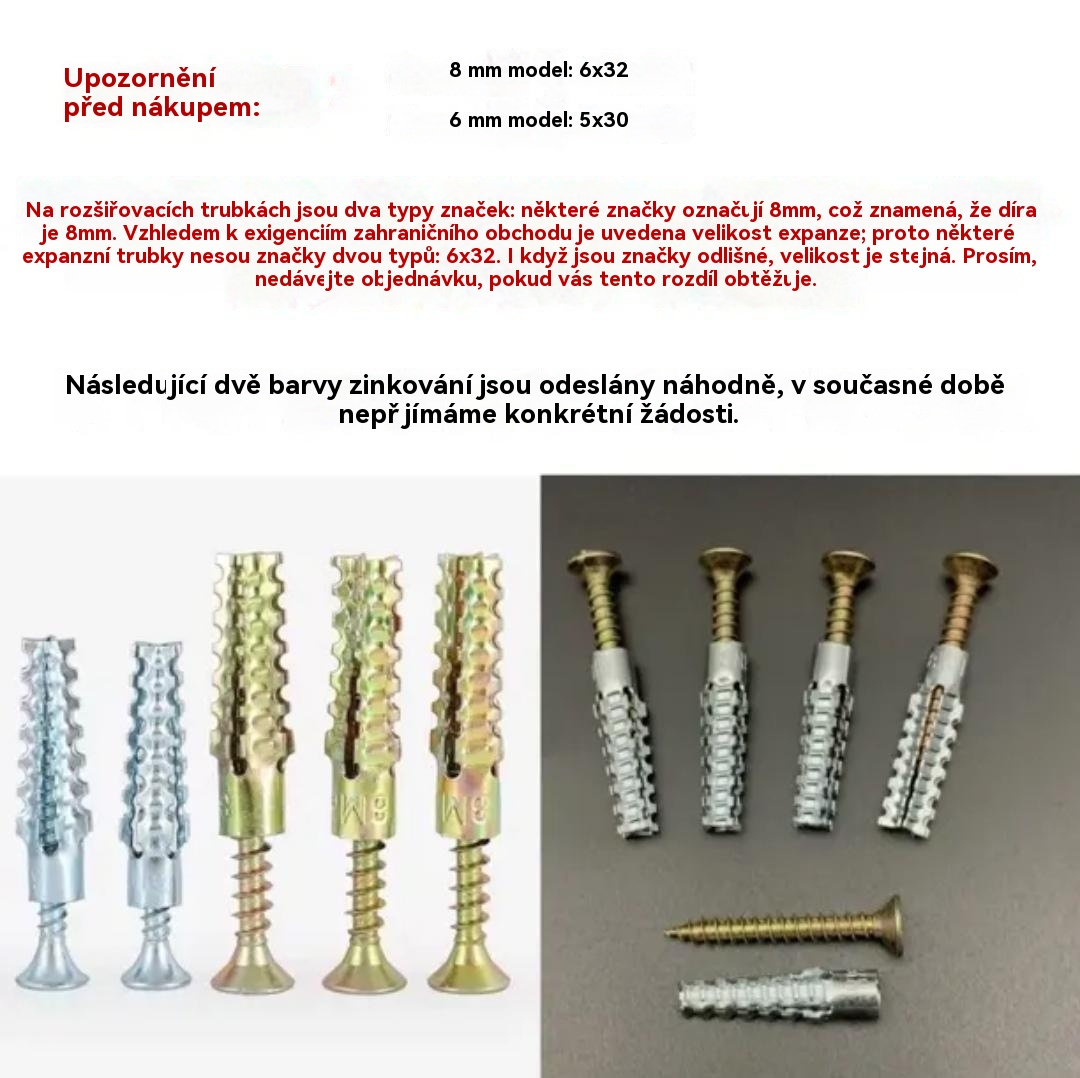【100/200 sad】🔩 Super silné vroubkované kovové rozpínací šrouby, které lze pevně připevnit k jakémukoli povrchu zdi.