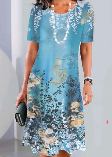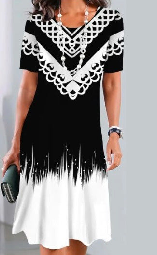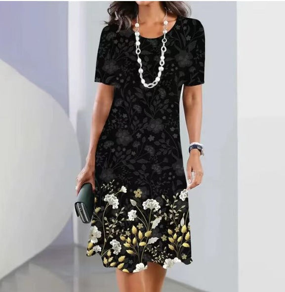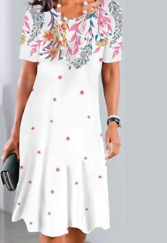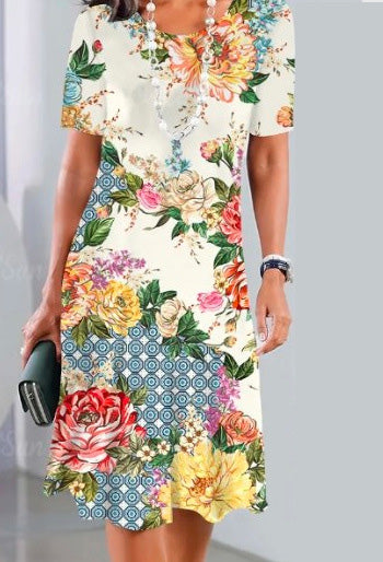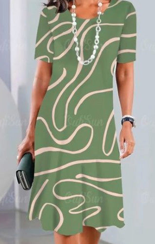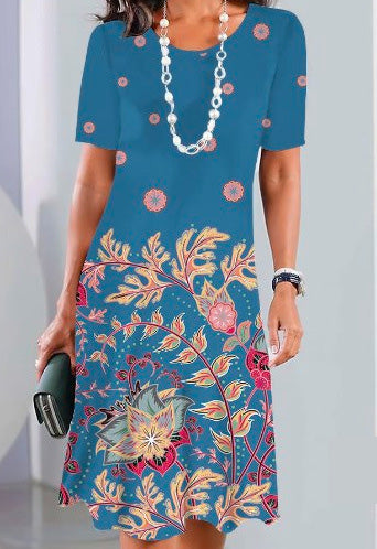 ✨【XS-5XL】👗👗Nové letné elegantné šaty s okrúhlym výstrihom a potlačou 2025, pohodlné a priedušné