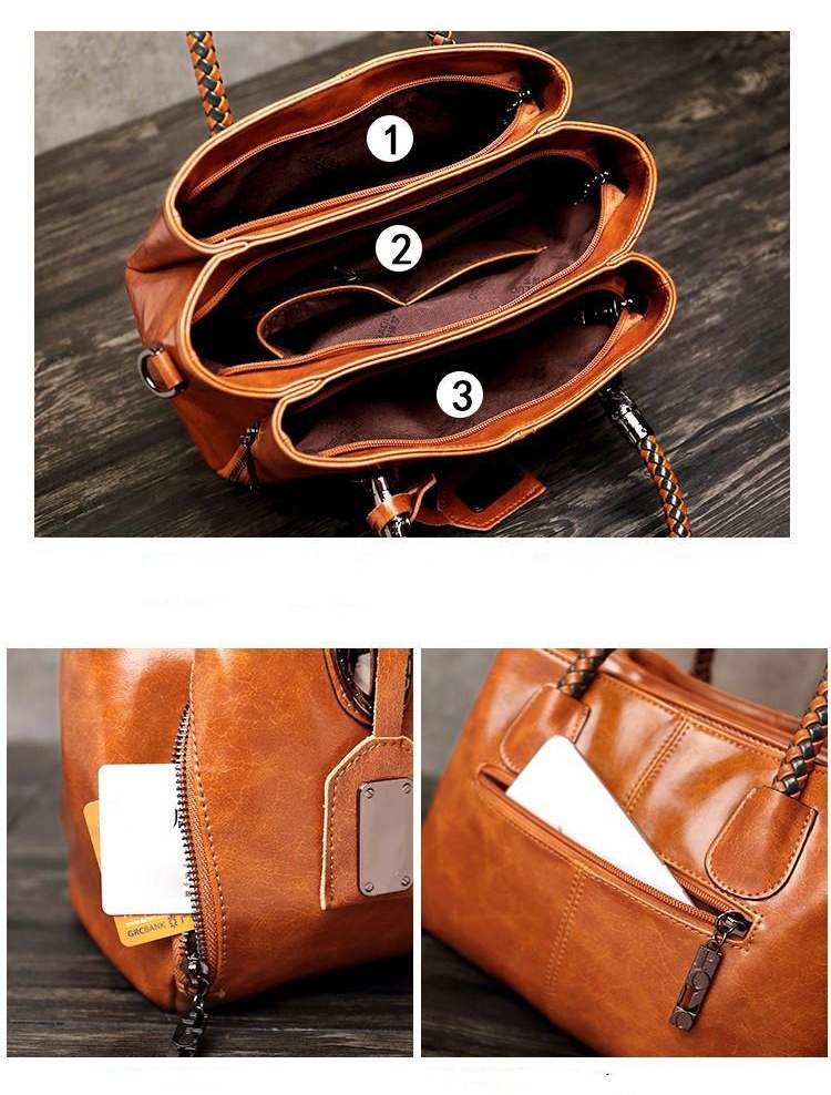 🎁👜【Časovo obmedzená zľava】Dámska vintage taška Boston z hovädzej kože, mäkká kožená kabelka, možno nosiť na jednom ramene