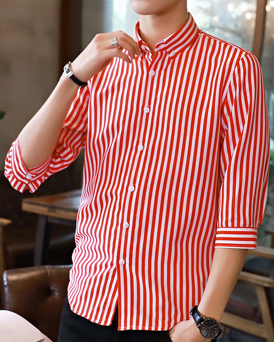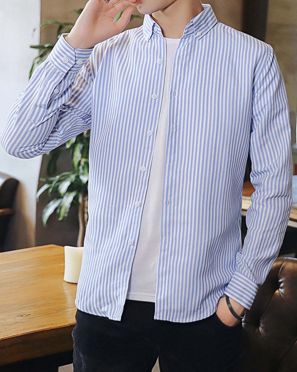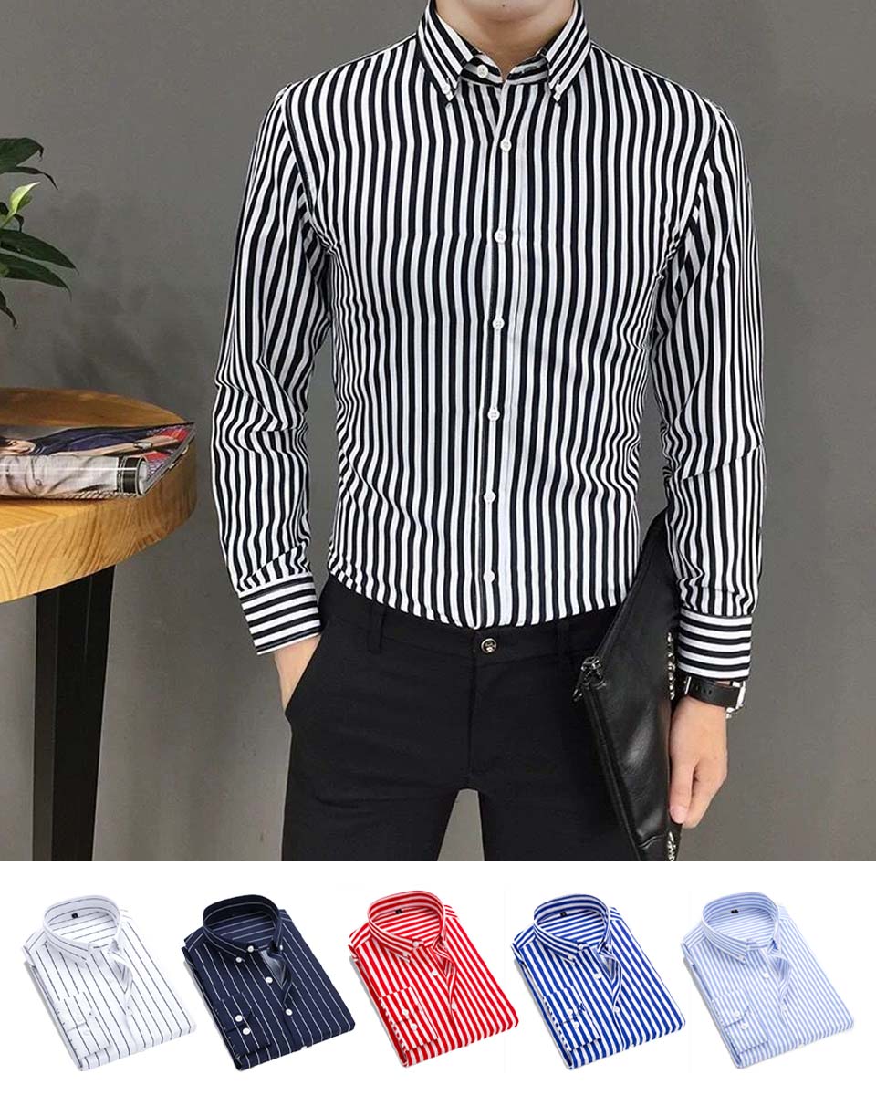 🔥👕【M-5XL】Pánska pruhovaná košeľa s dlhým rukávom v biznis štýle 2025