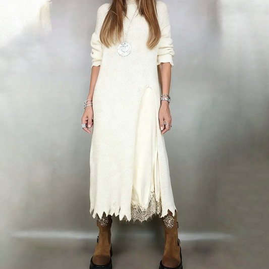 【XS-3XL】👗Nuevo conjunto de encaje, diseño con aberturas, estilo suéter, conjunto de dos piezas vestido-suéter con tirantes y abertura