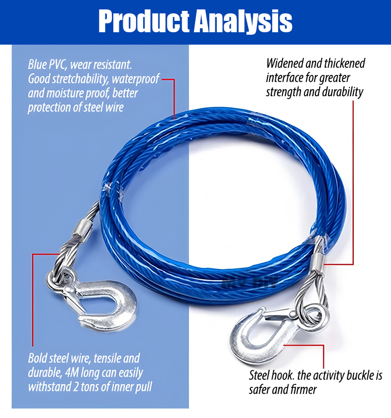 ⛓️🚗【4 m 5 toneladas】Cuerda de remolque para automóvil, cuerda de tracción, cuerda de rescate, accesorios de seguridad