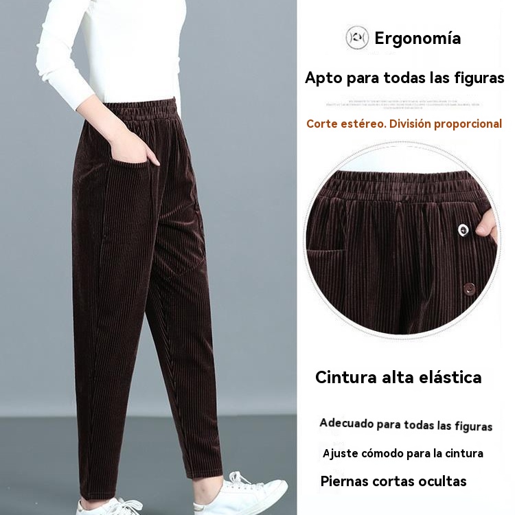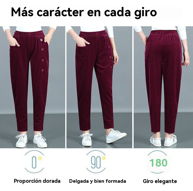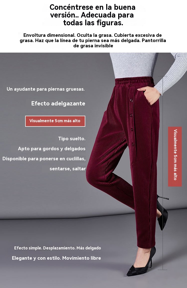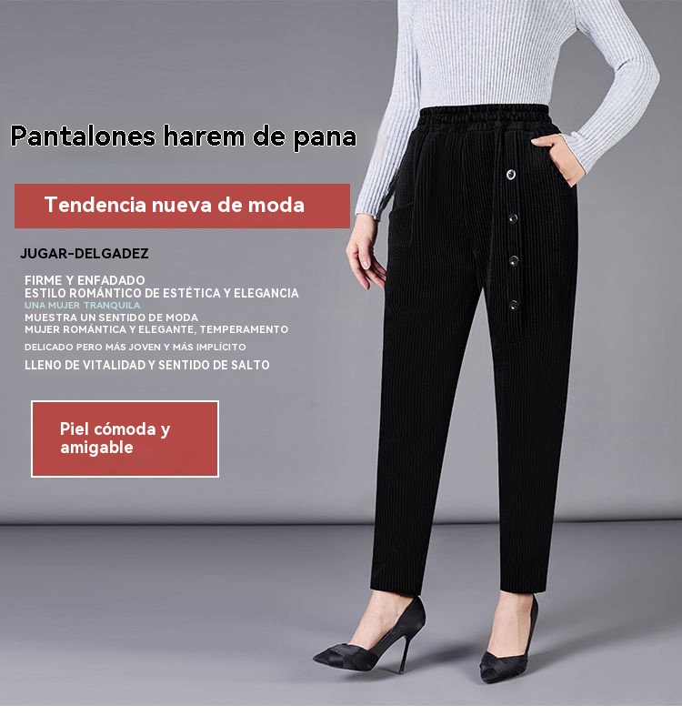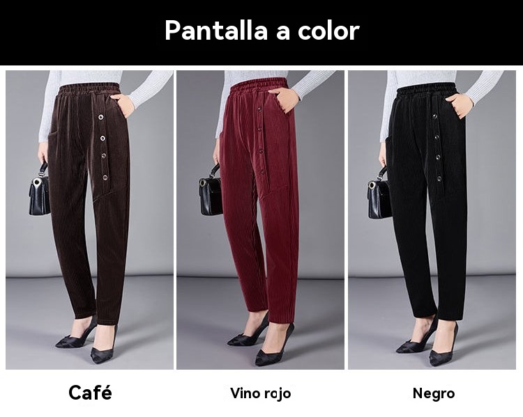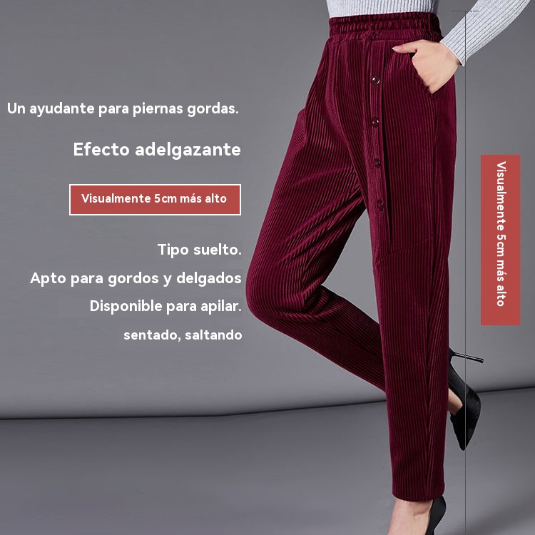 ✨️💕【XL-5XL】Pantalones largos de terciopelo con botones para mujer, nuevo estilo para otoño e invierno 2025