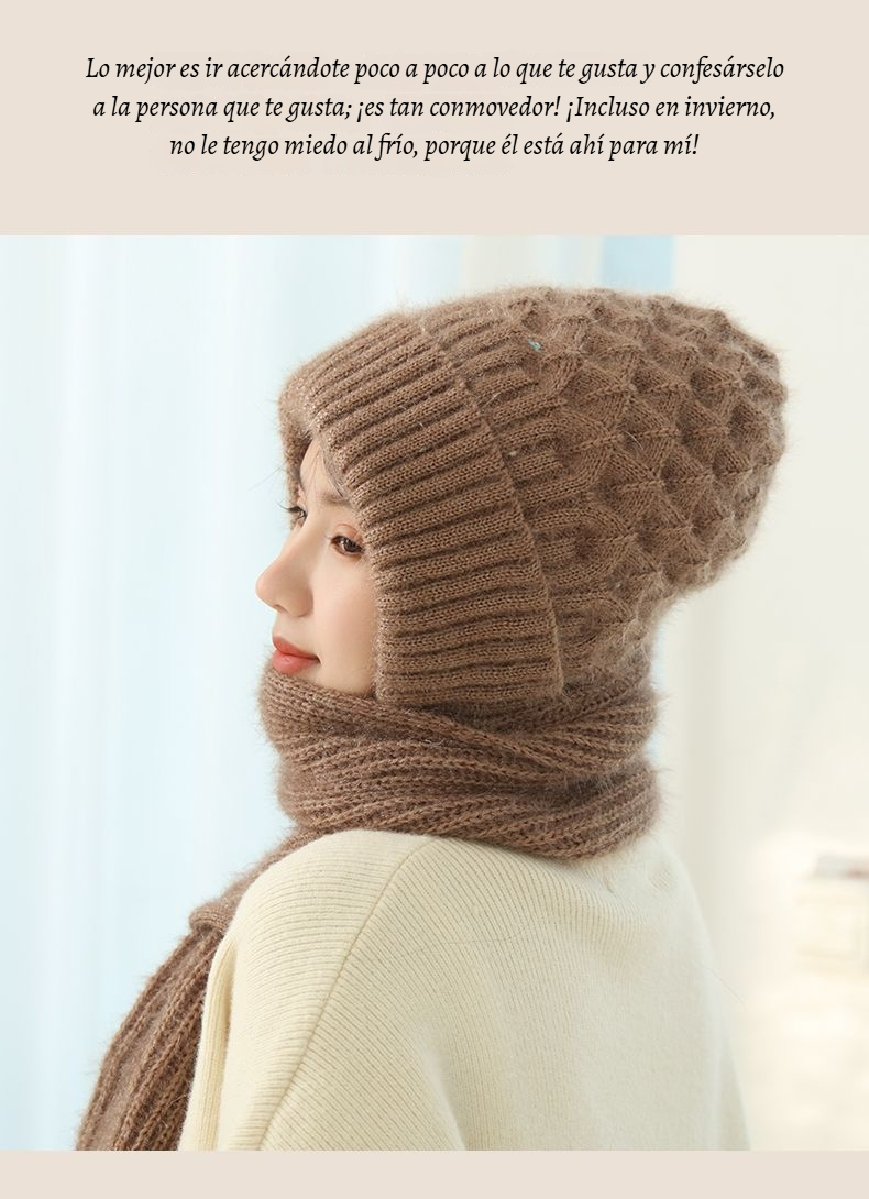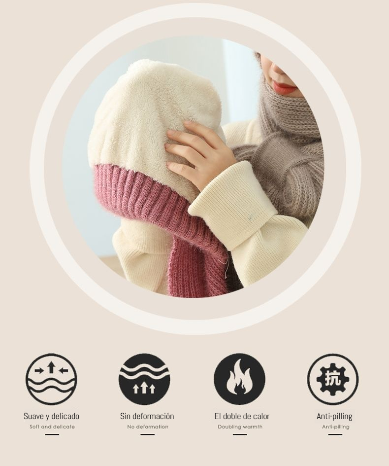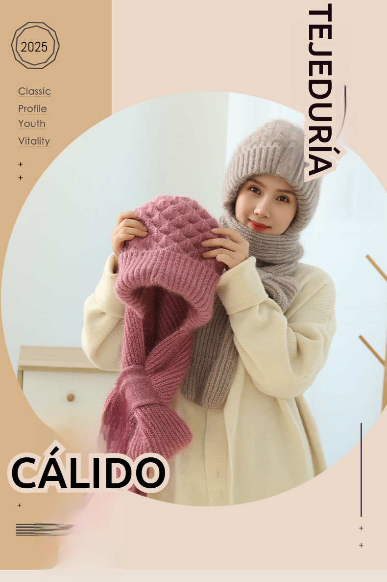 ✨ Nueva 2025 ✨ 🧣 Gorro-bufanda en uno, tejido delicado, forrado, abrigado, tendencia femenina 🧣