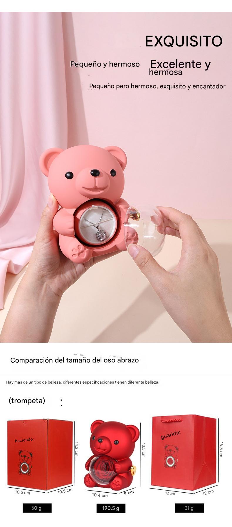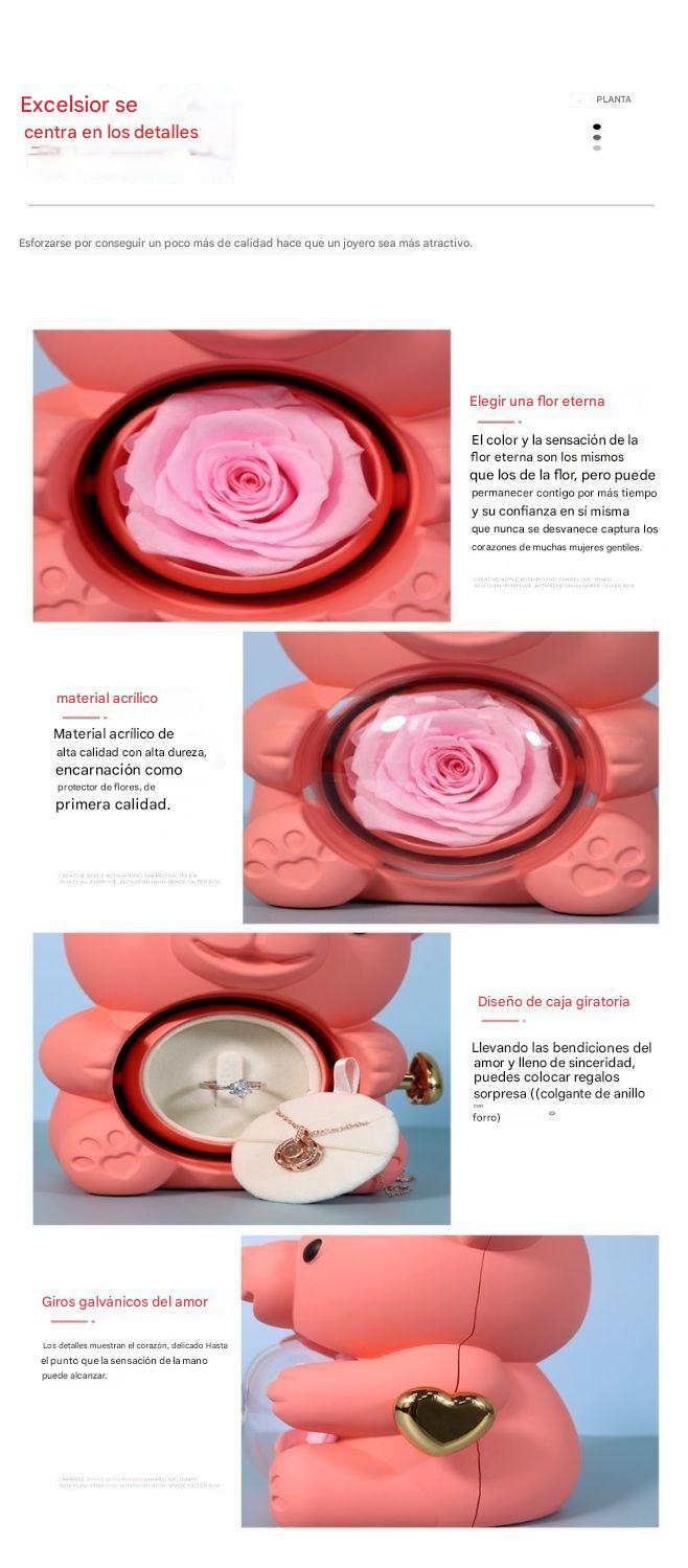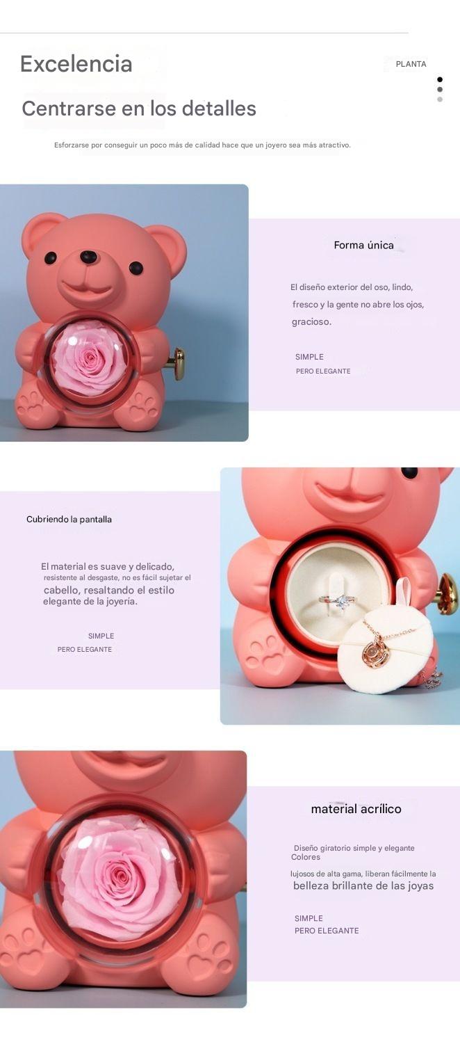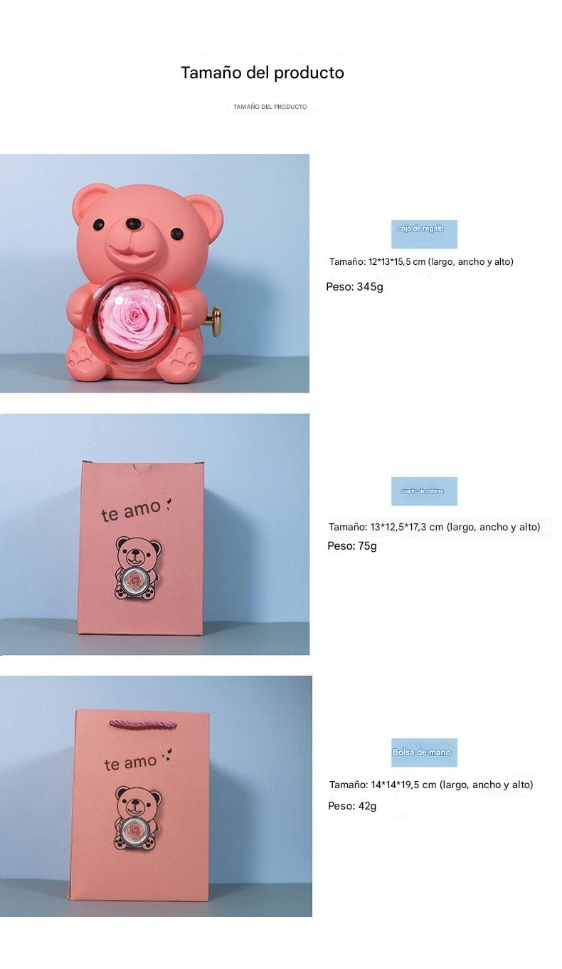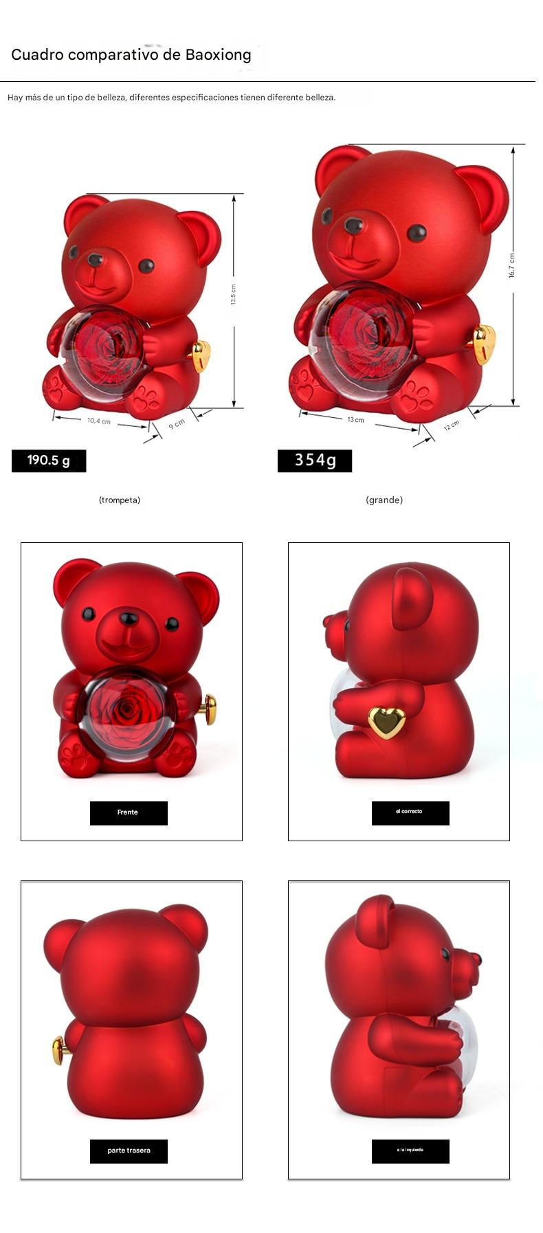 ✨Adorable osito de peluche con rosa preservada - Osito de peluche decorado con una rosa real, en una hermosa caja de regalo - Regalo romántico para el Día de la Madre, bodas, aniversarios, despedidas de soltera, Navidad y San Valentín.