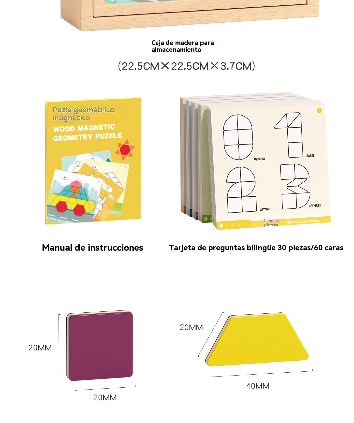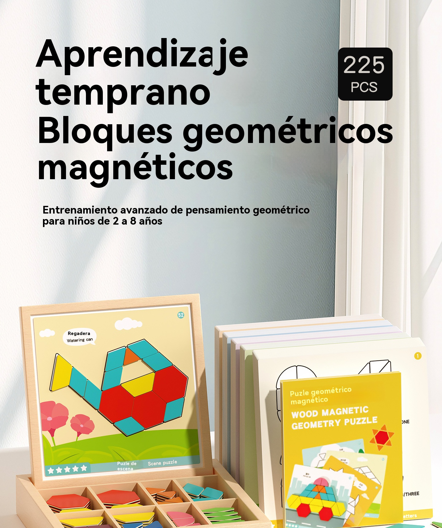 👶🌈🧩【225 piezas】🔥Juguete de rompecabezas tangram de madera magnético, entrenamiento cerebral y juguete educativo para niños, estimula el pensamiento