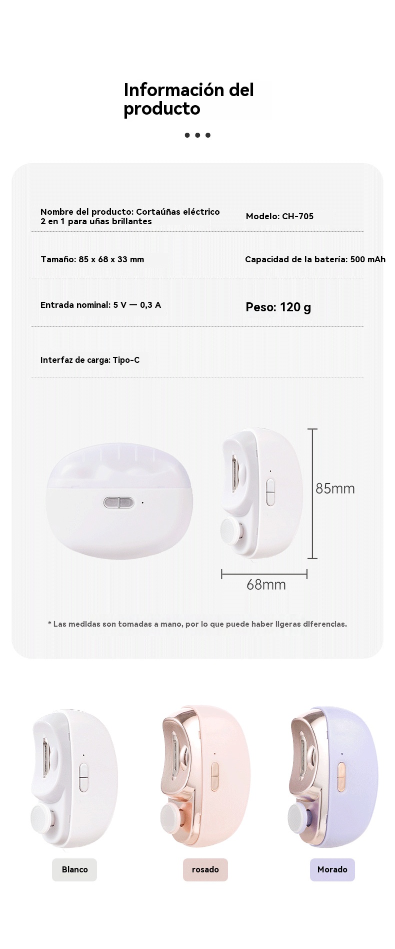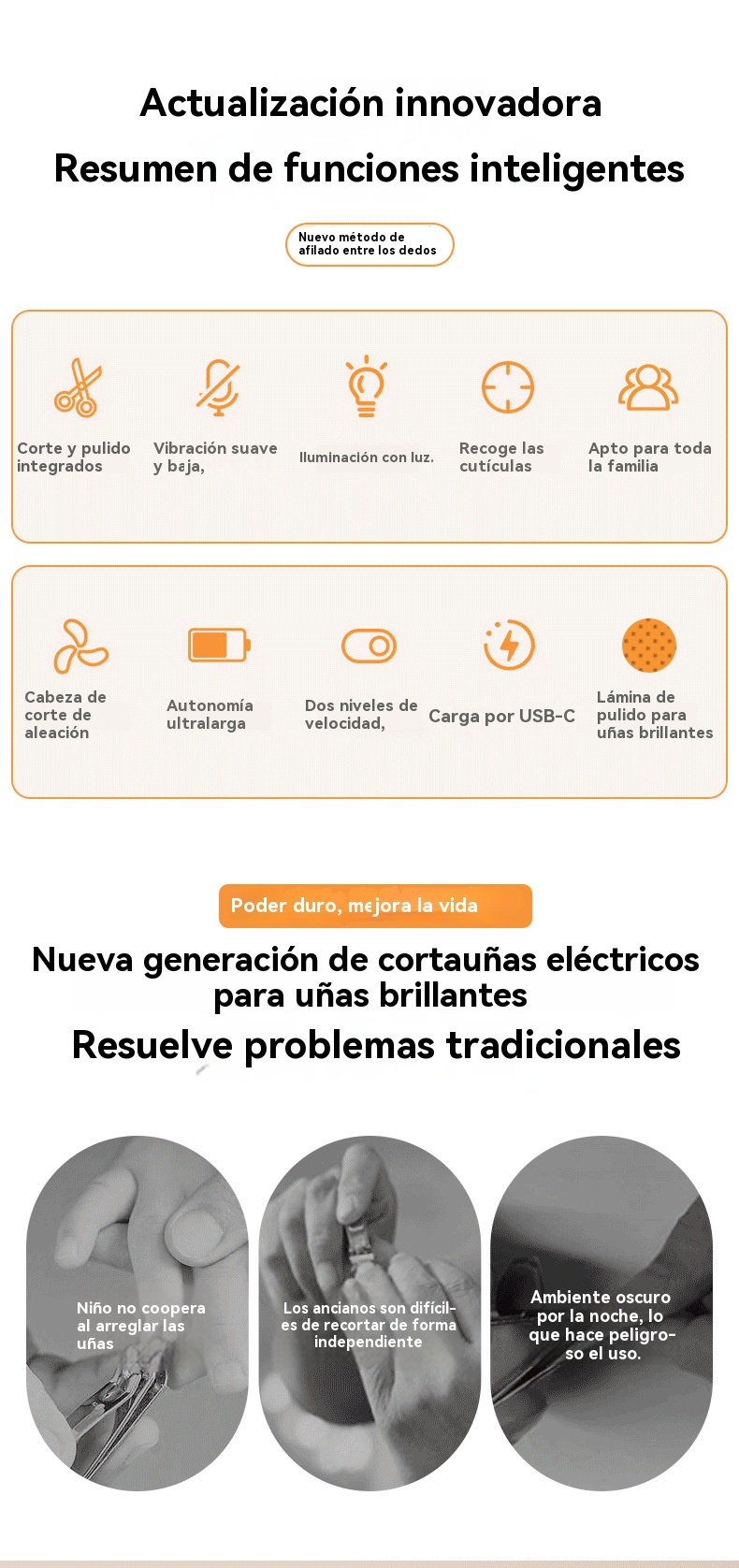 💅✨Cortaúñas eléctrico de alta calidad, adecuado para personas mayores y niños, corte automático con función de limado de uñas.