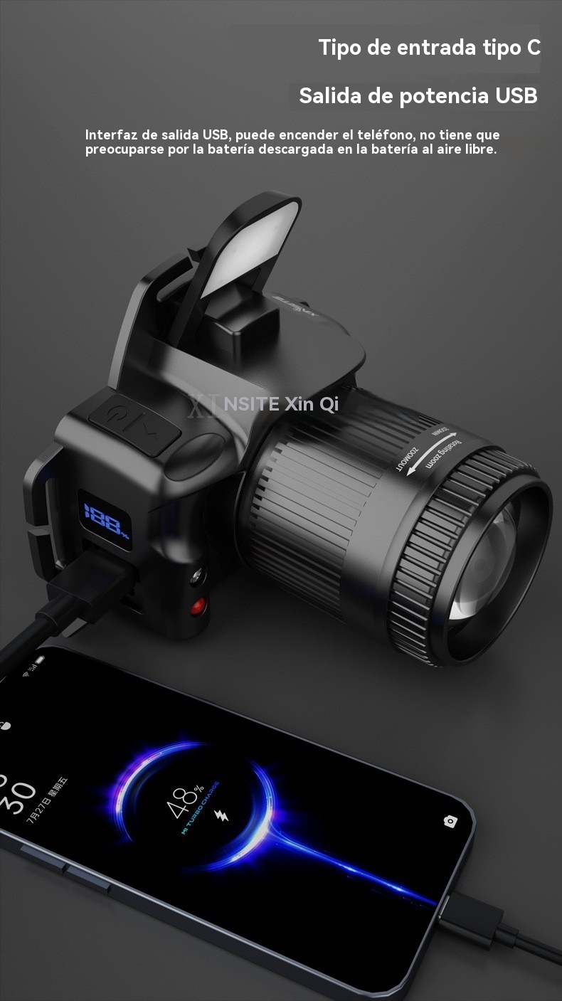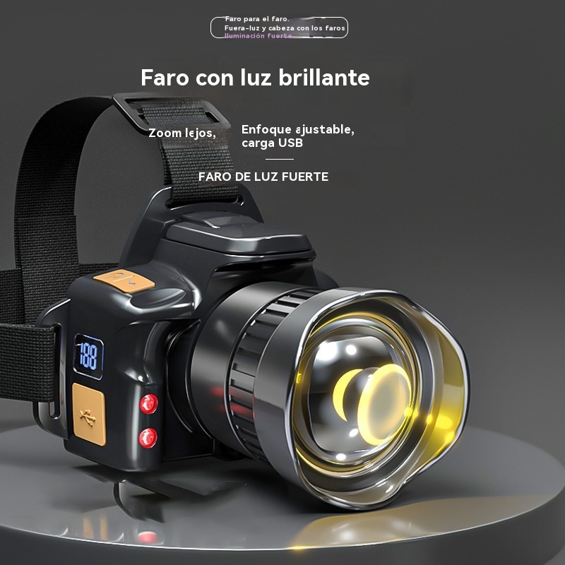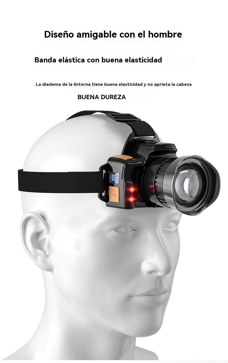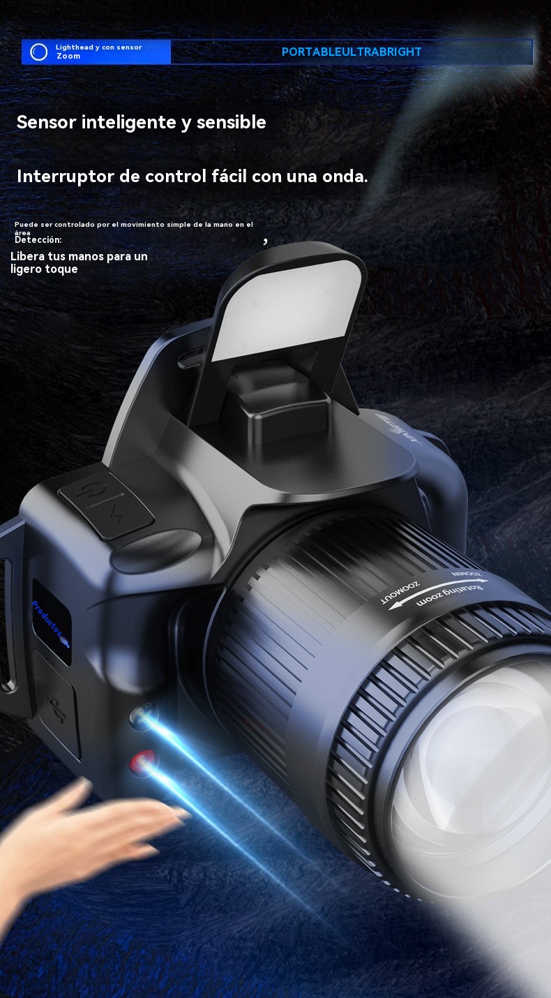 💡Potente linterna frontal de inducción para uso doméstico, uso al aire libre, zoom, largo alcance, recargable, larga duración, caminata nocturna, aventura, pesca nocturna