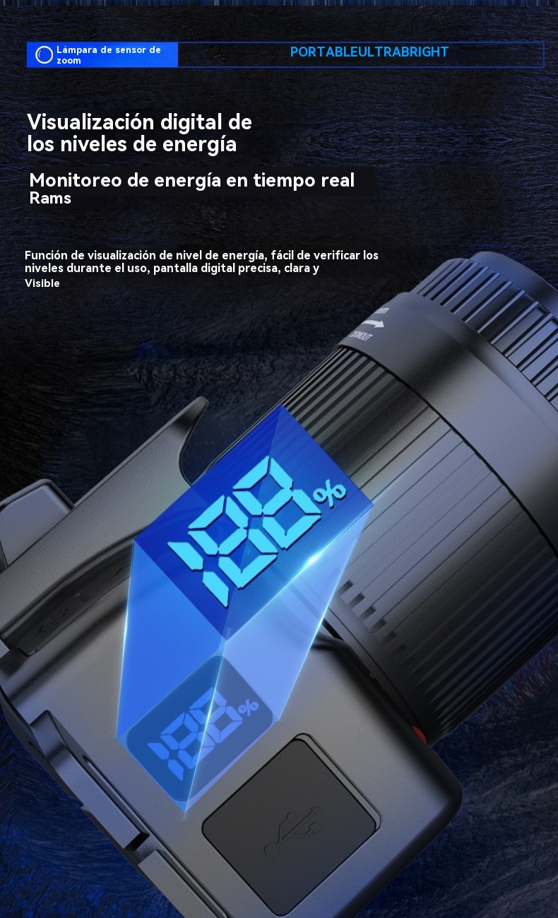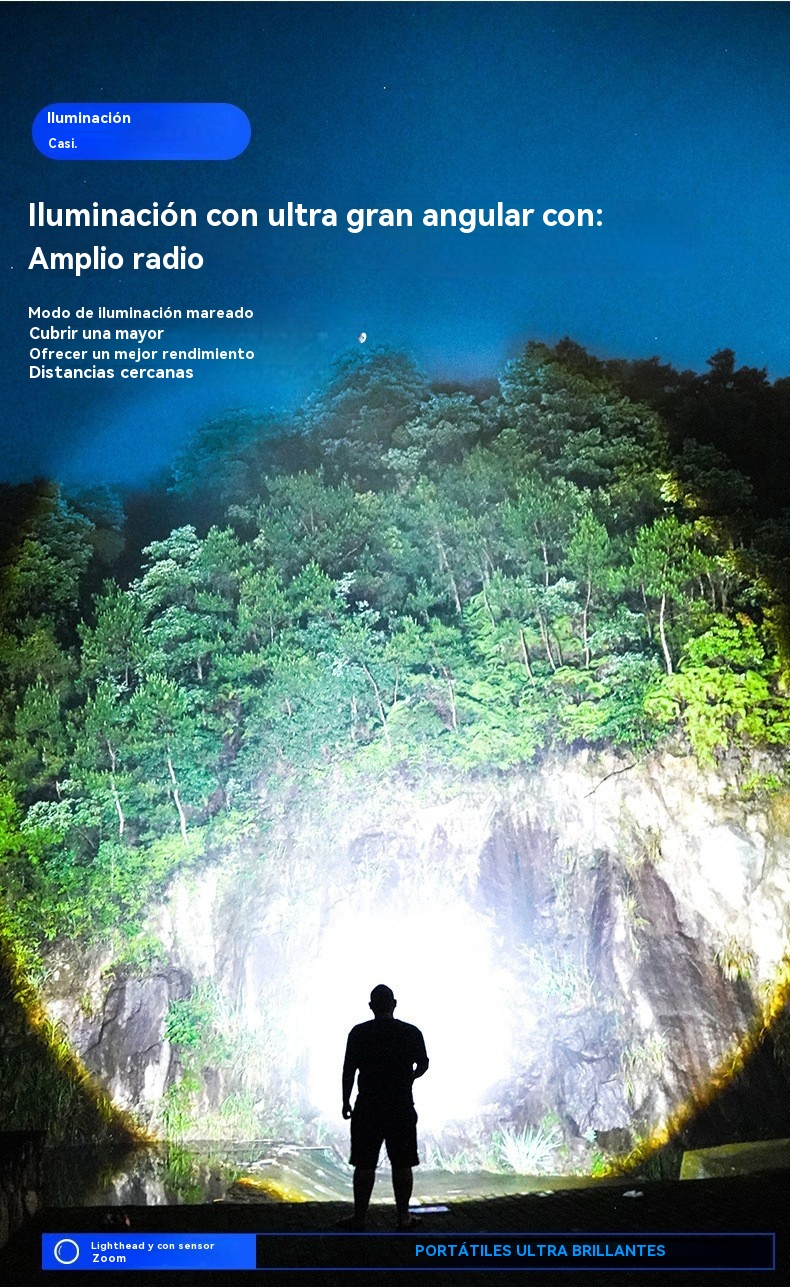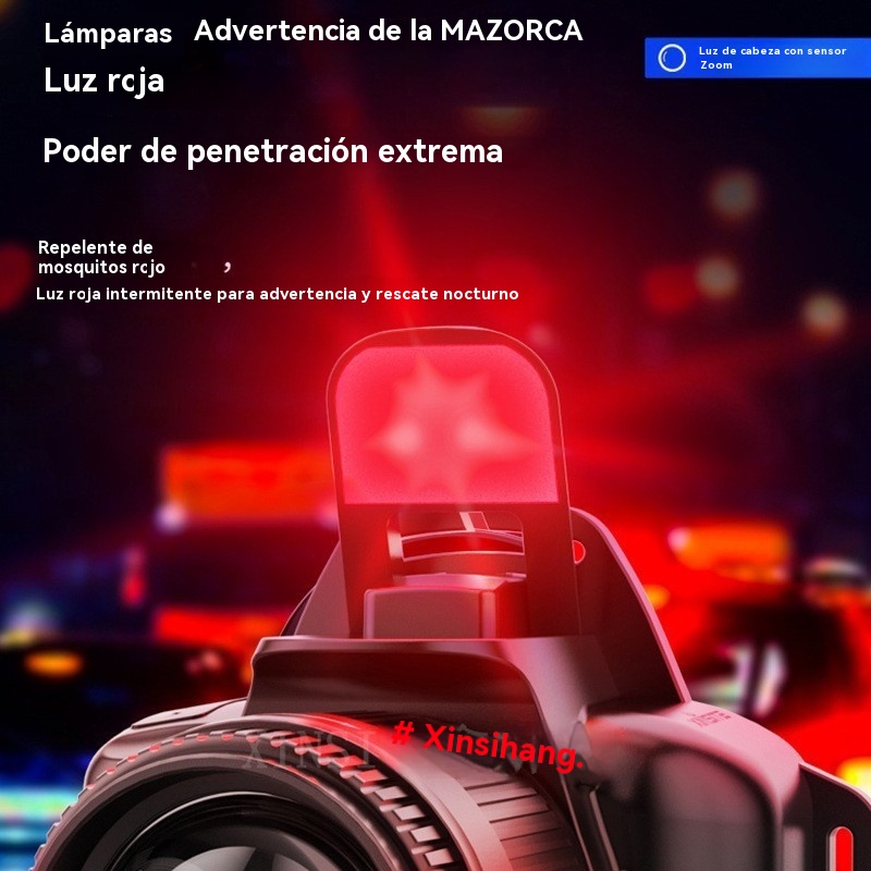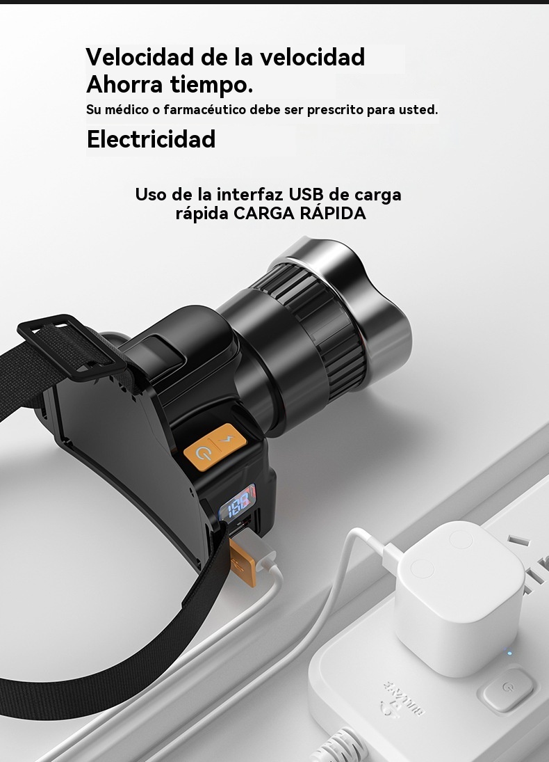 💡Potente linterna frontal de inducción para uso doméstico, uso al aire libre, zoom, largo alcance, recargable, larga duración, caminata nocturna, aventura, pesca nocturna