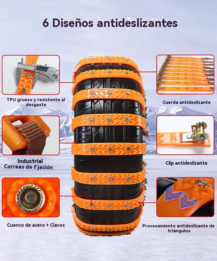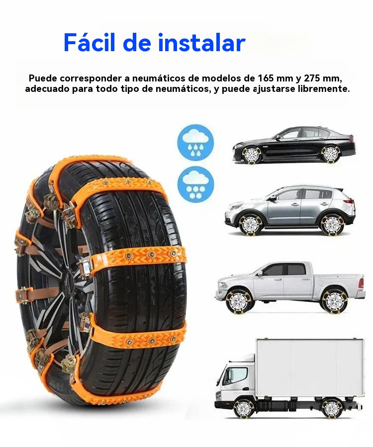 🔥🚗【Paquete de 4, Herramientas de instalación incluidas】🔥 Cadenas de nieve, Cadenas de nieve de emergencia universales para neumáticos de automóvil