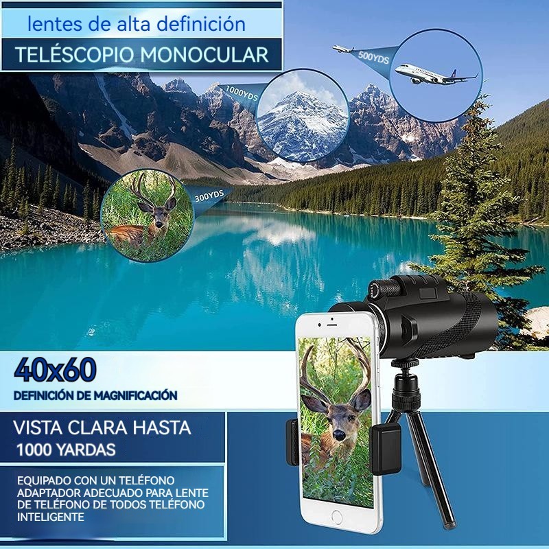 🔭【Monoculares negros 40x60 + clip para teléfono + trípode】Monocular de visión nocturna de alta ampliación y alta definición, modelo nuevo 2026