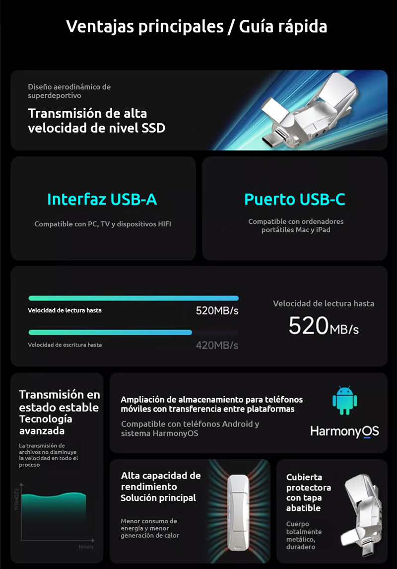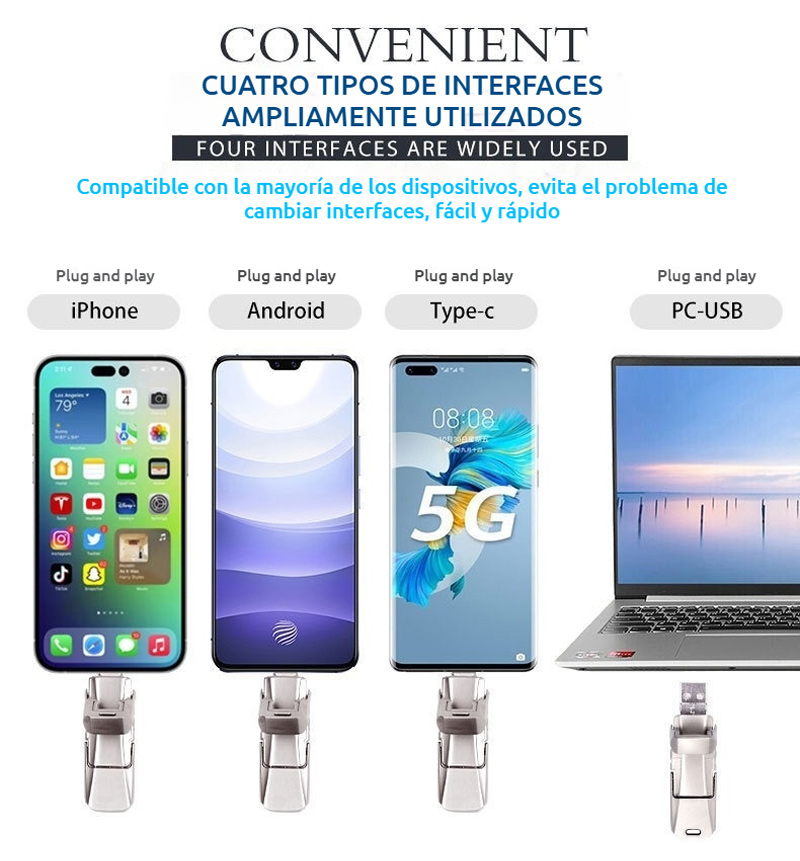 (32GB)Nuevo modelo 2026 📲💻 Unidad flash USB 4 en 1 para teléfonos y computadoras, unidad de estado sólido tipo C,unidad flash USB