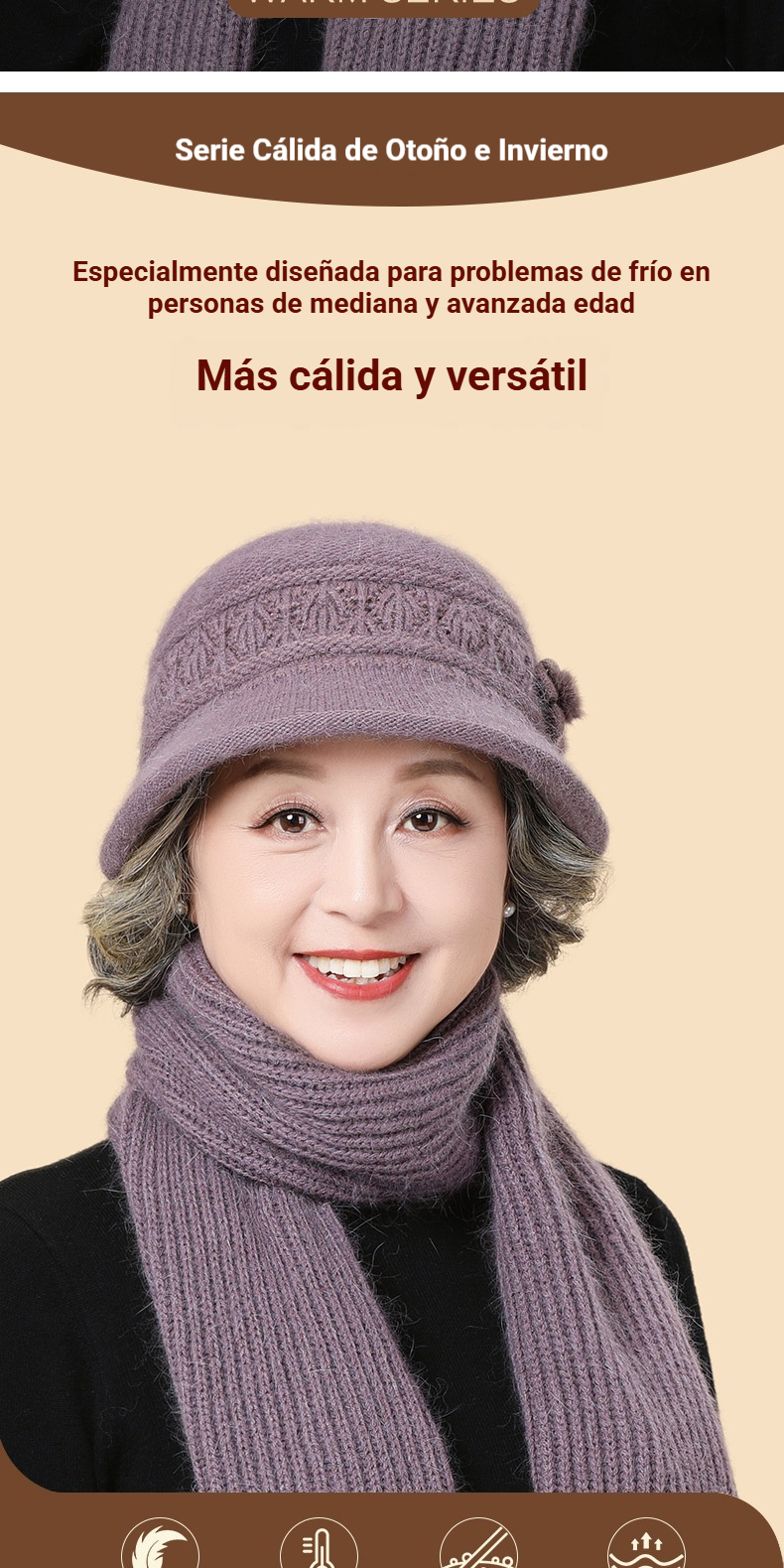 🧶Sombrero + bufanda🧶 Compañero cálido en invierno: gorro de lana de punto cálido
