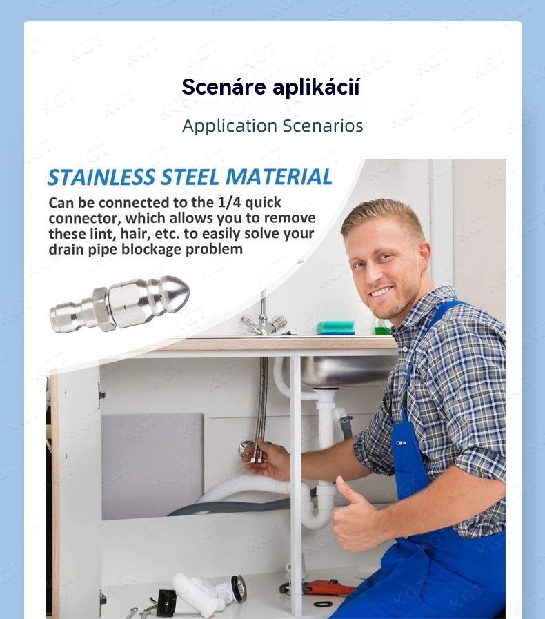 🛠️Vysokotlaková tryska na vodné potkany, nehrdzavejúca oceľ, s rýchlouzáverom 1/4, predná a zadná, šesť trysiek, hlavica na čistenie a odblokovanie kanalizačných potrubí