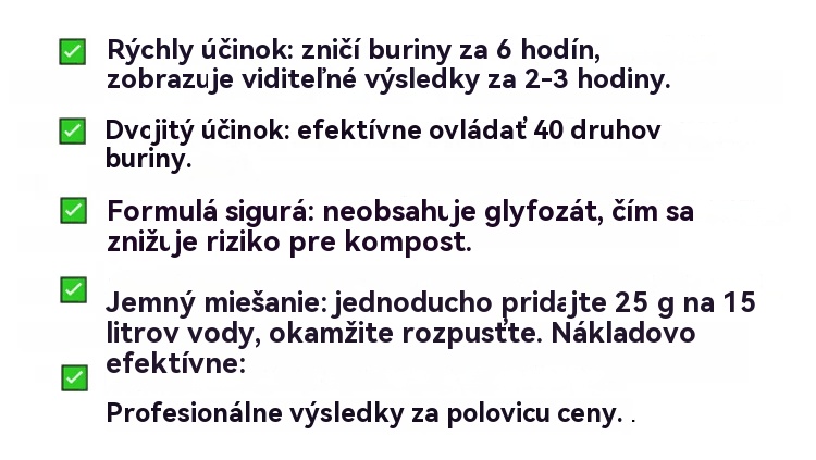 【9 vrecúšok】💥Silný herbicíd 2 v 1💥 Určený na boj proti burinám odolným voči glyfosátu, účinkuje už do 6 hodín a súčasne narúša syntézu bielkovín a pigmentov v burinách!
