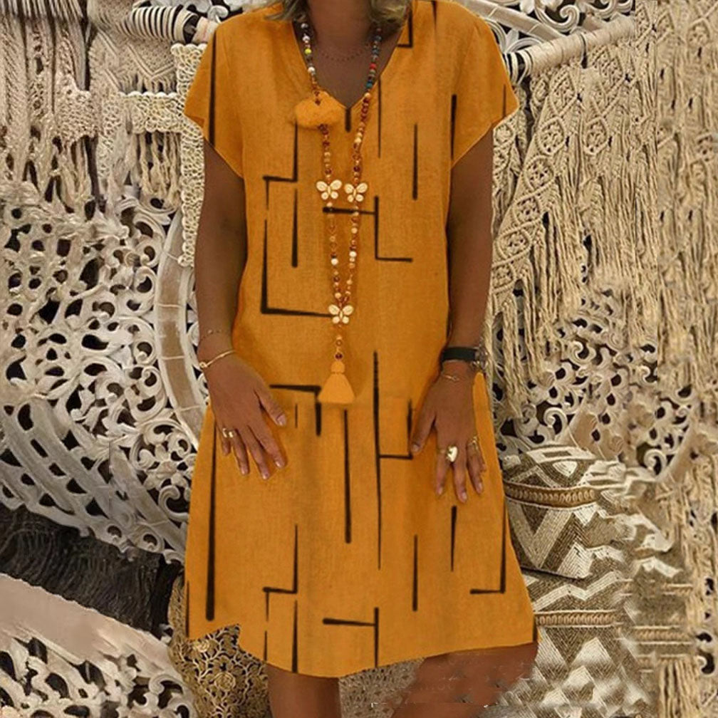 Horúci výpredaj【S-5XL】🏆👗 Jednofarebné jednoduché bavlnené šaty s výstrihom do V, módne šaty s potlačou