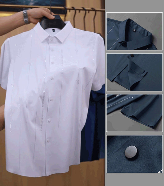 【M-4XL】Nouă bluză cu mânecă scurtă, la modă și confortabilă pentru bărbați, super elastică, anti-rid, nu necesită călcare. 3715492