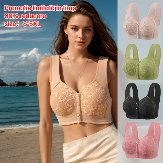 😍【Pachet de 5 piese】Sutien confortabil pentru femei, confecționat din bumbac, cu crăpătură frontală 🎉【40-120 kg】