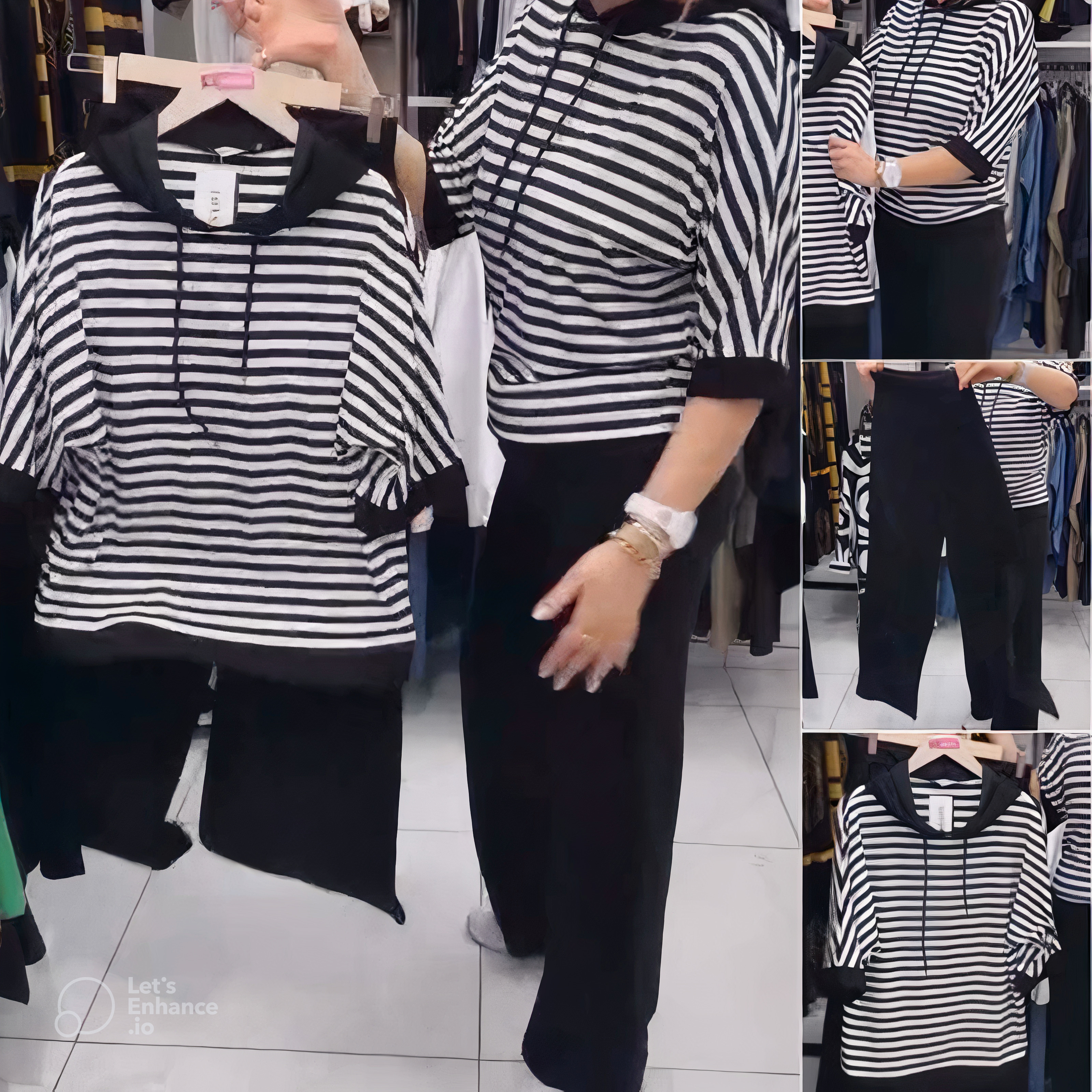 💥 LICHIDARE DE STOC 💥 Set de top cu dungi și pantaloni uni pentru femei