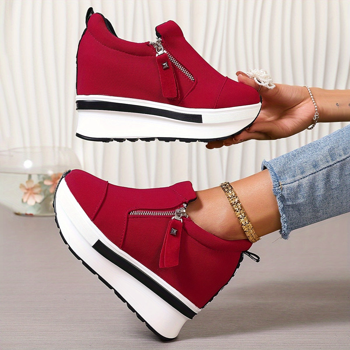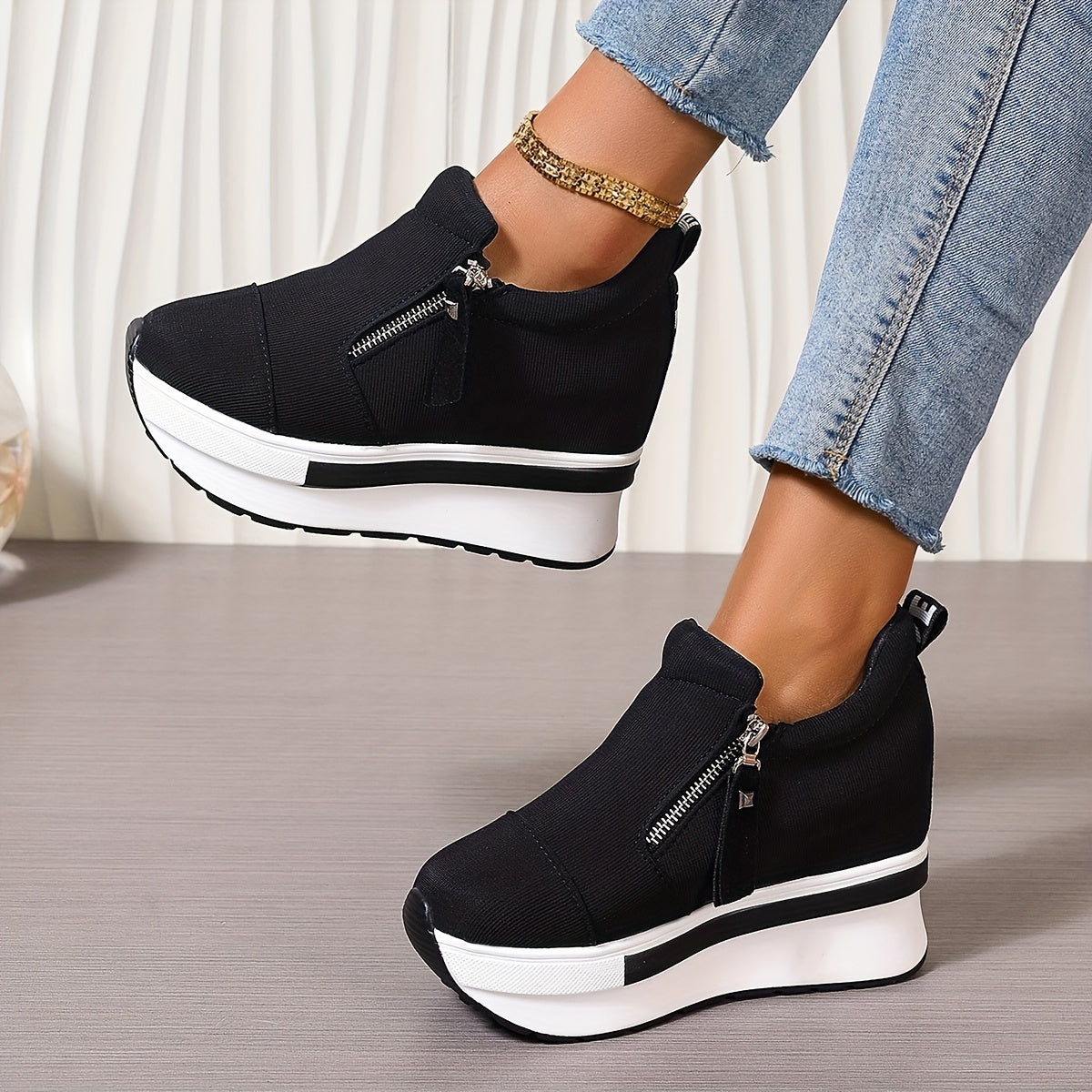 🔥🔥Pantofi casual din pânză 2024 cu fermoar lateral, talpă groasă 3744612