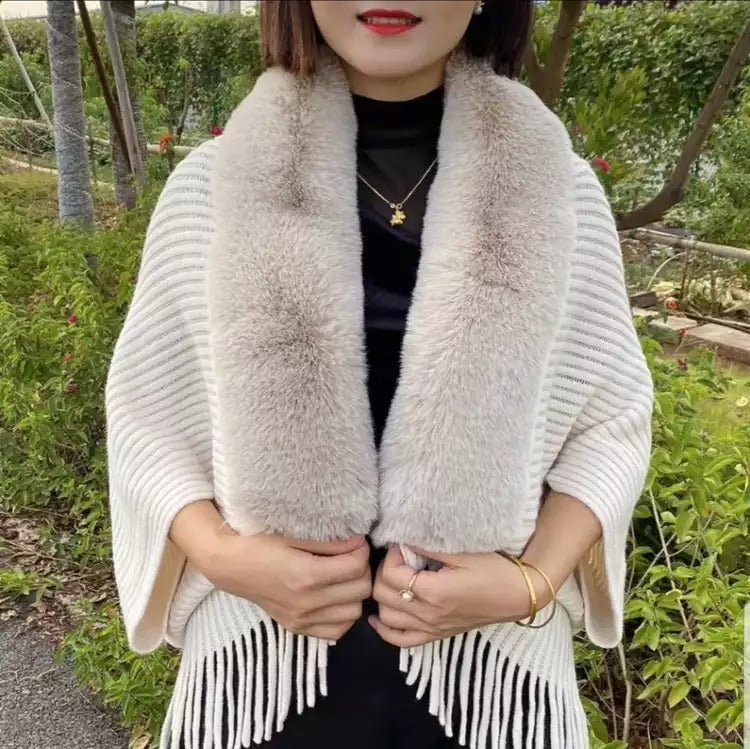 🔥【Cumpără 1, primești 1 gratuit】 Eșarfă termică cu guler din blană cu ciucuri 3807888