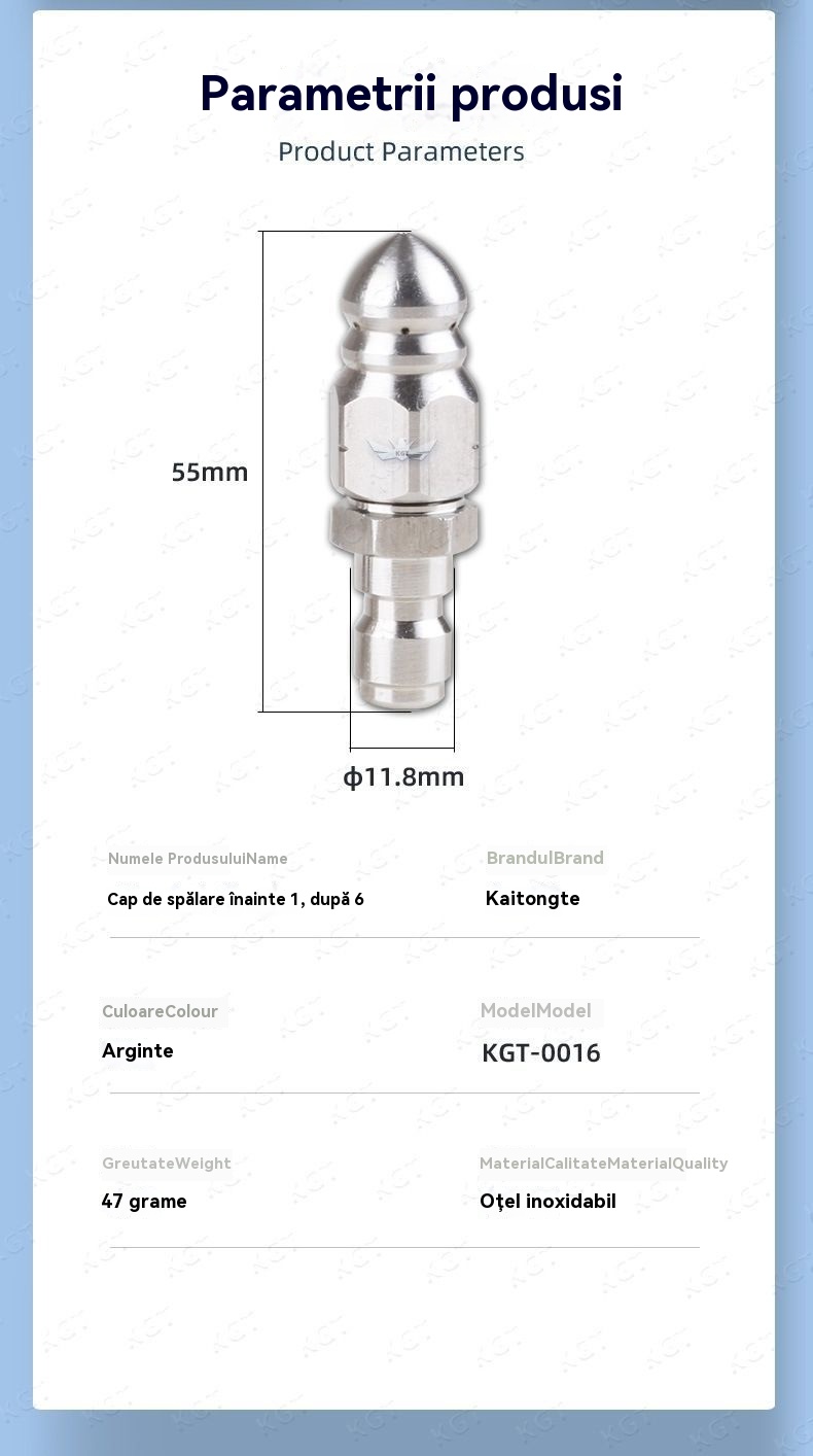 🛠️Duză de înaltă presiune pentru șobolan de apă, din oțel inoxidabil, cu dop rapid de 1/4, față și spate, șase duze, cap de curățare și desfundare a țevilor de canalizare