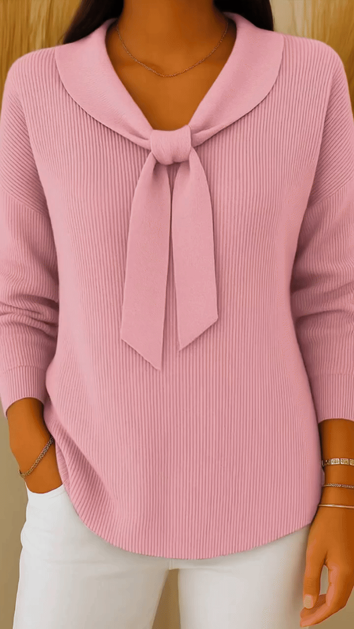 🎀Dámský jednobarevný svetr s dlouhým rukávem a zavazováním vpředu (40-90 kg) v akci, ležérní a volný střih.