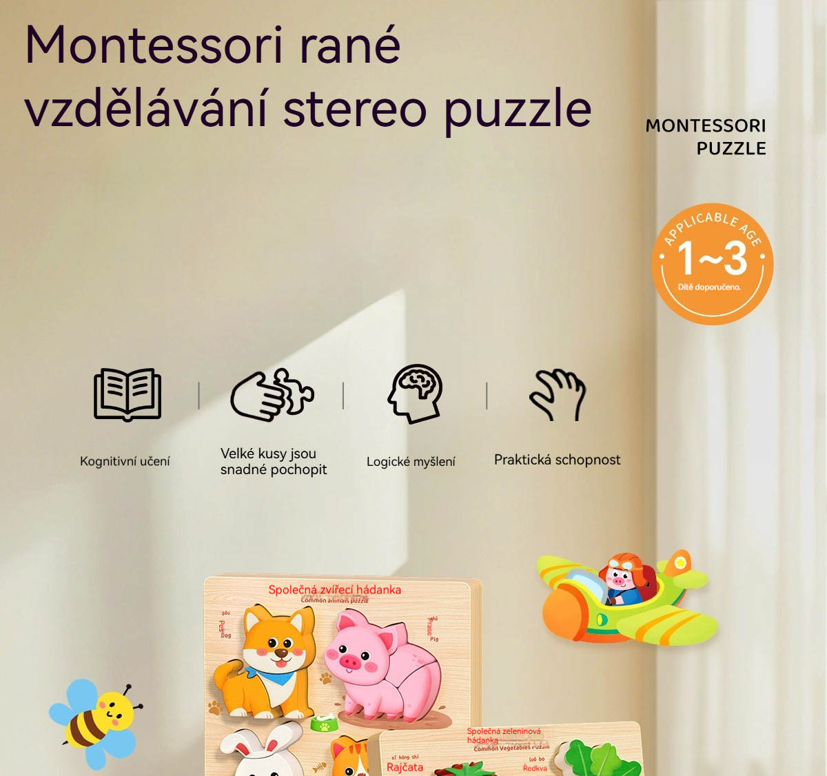 👧🏻🧩Dřevěné 3D puzzle Montessori pro vzdělávání v raném dětství