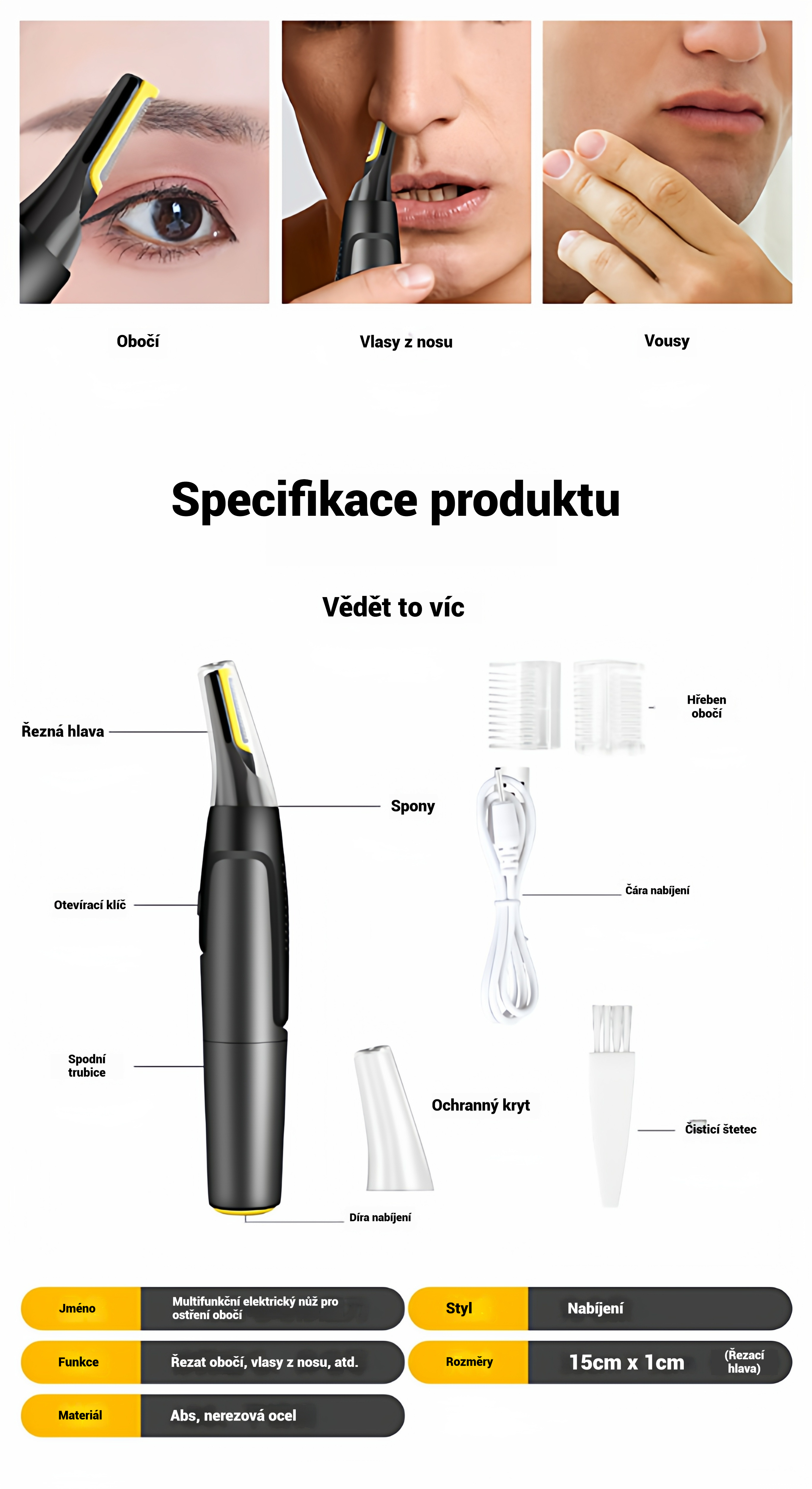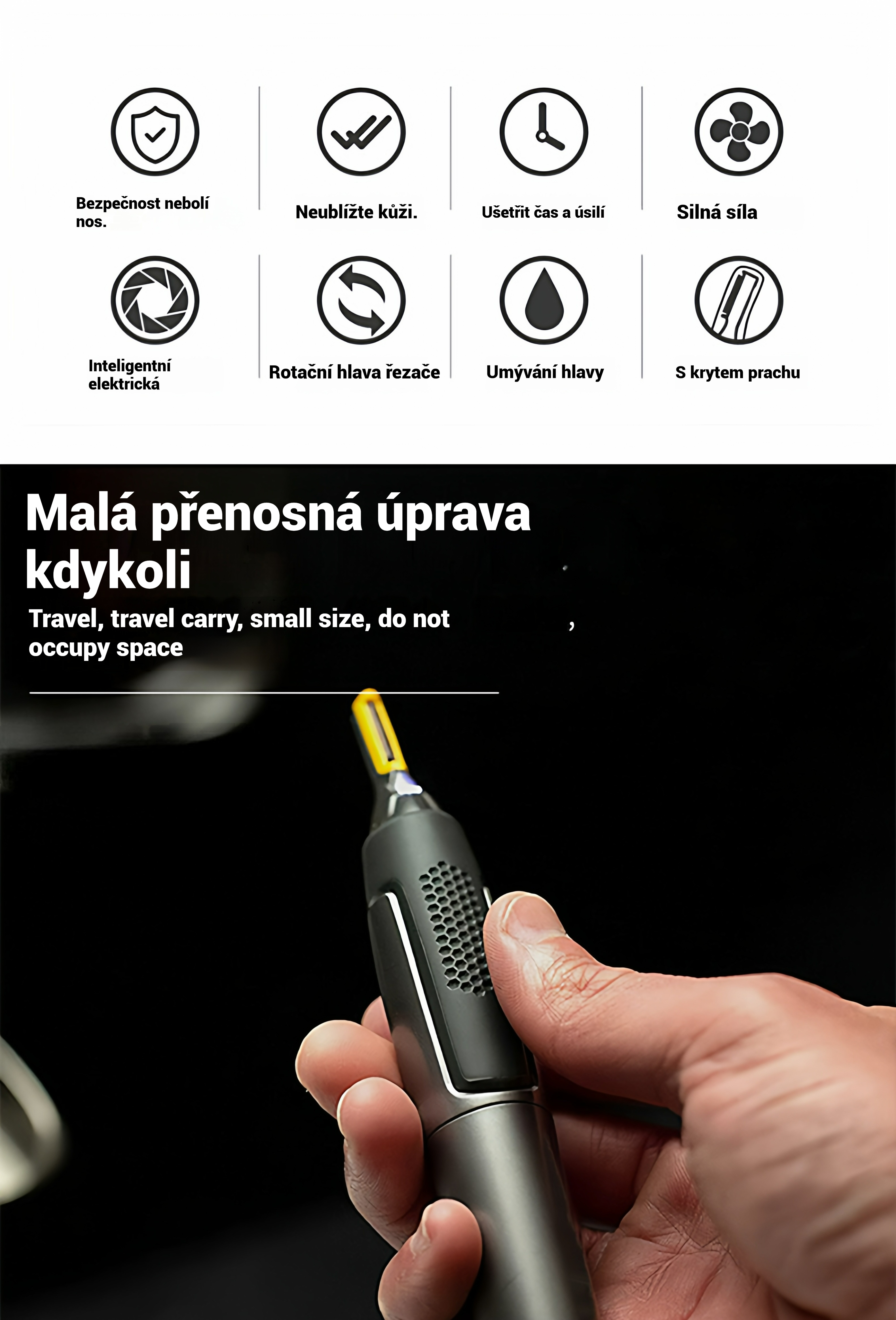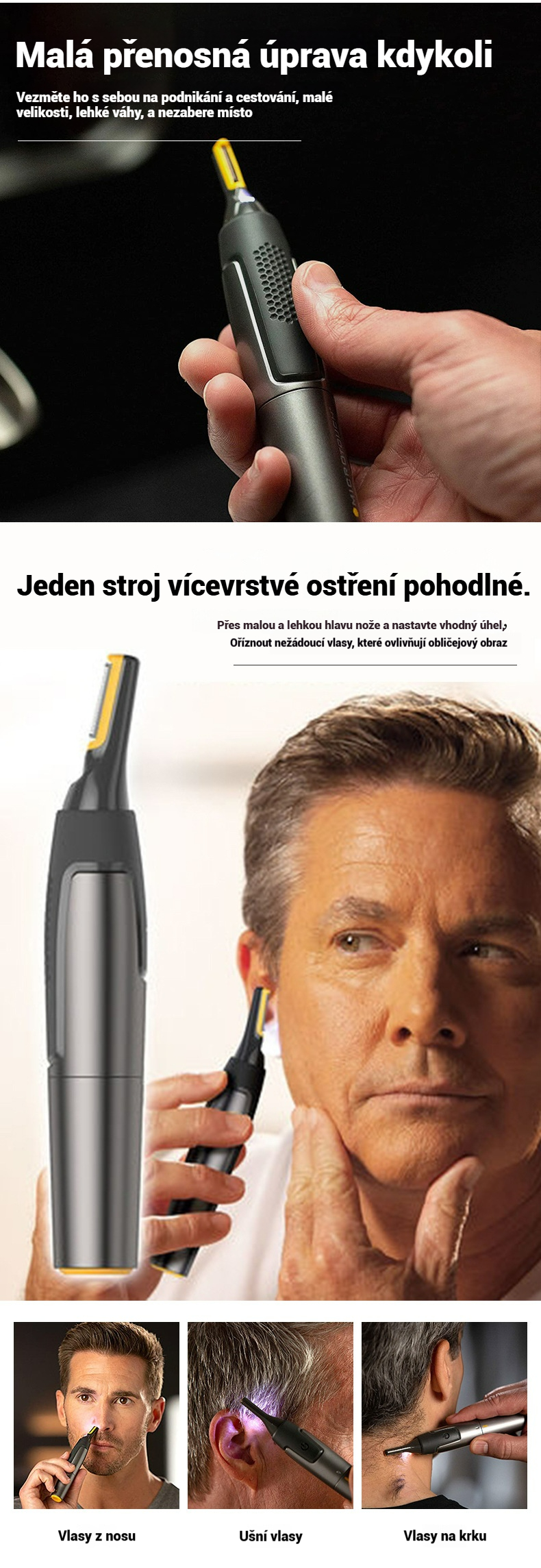 👨🔥2025 novinka🔥 Pánský elektrický zastřihovač chloupků v nose⚡ Dobíjecí mini přenosný ✂️ 3 v 1 pro obočí a kotlety, bezpečný a šetrný k pokožce✅