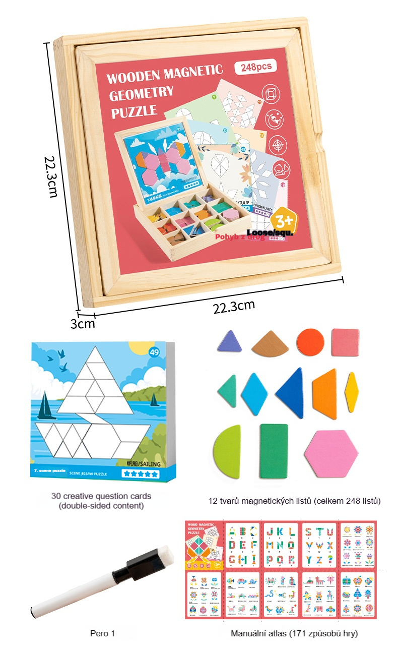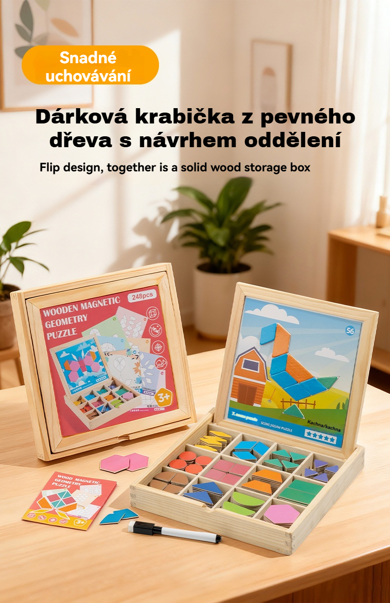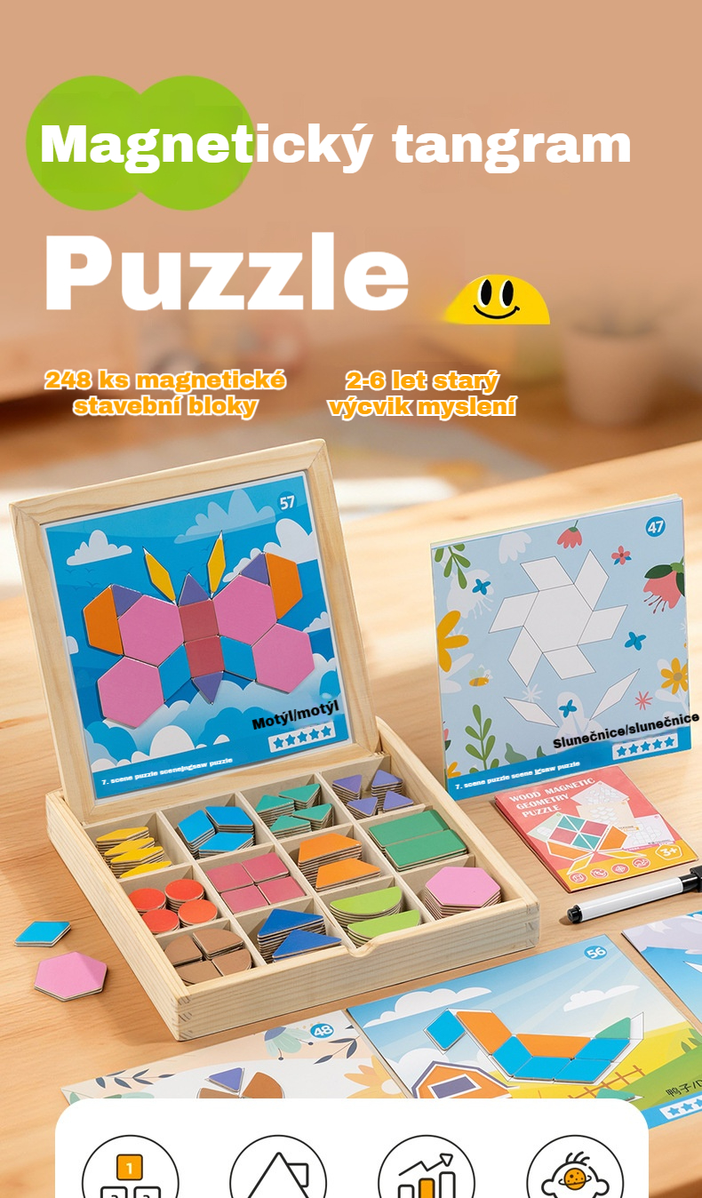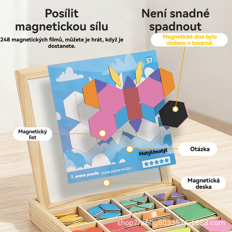 👶🌈🧩【248 dílků】🔥Magnetické dřevěné tangram puzzle, trénink mozku a vzdělávací hračka pro děti, stimuluje myšlení