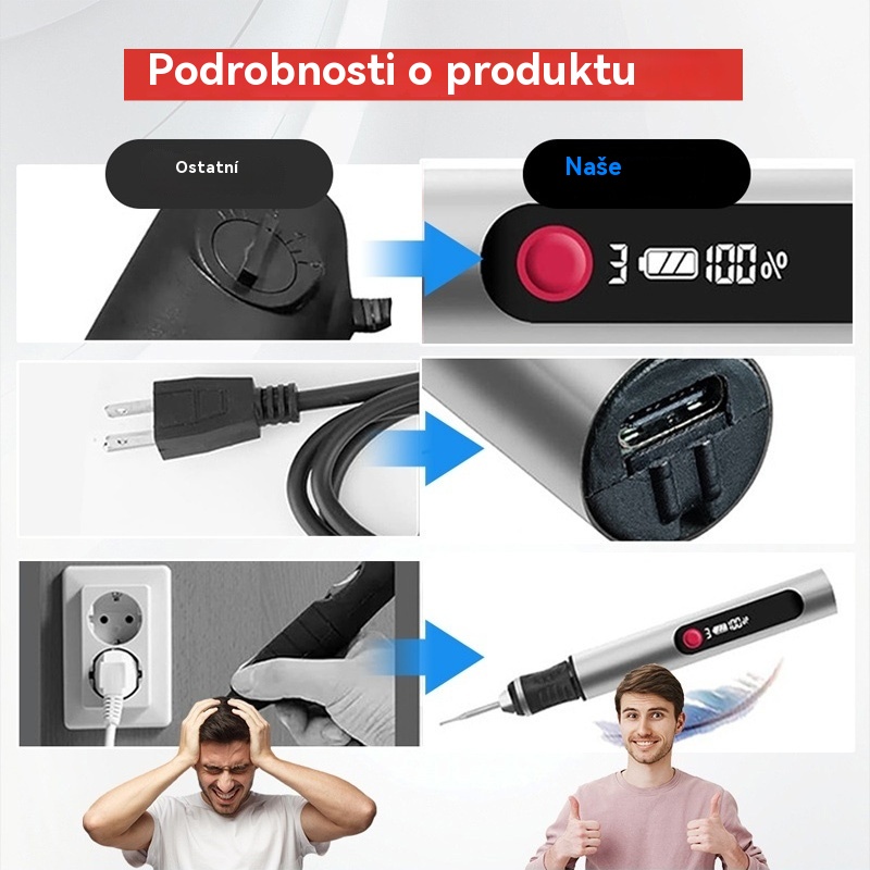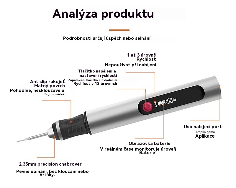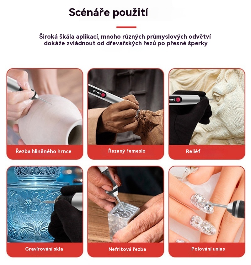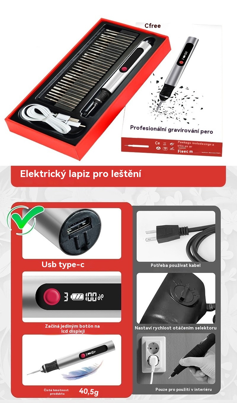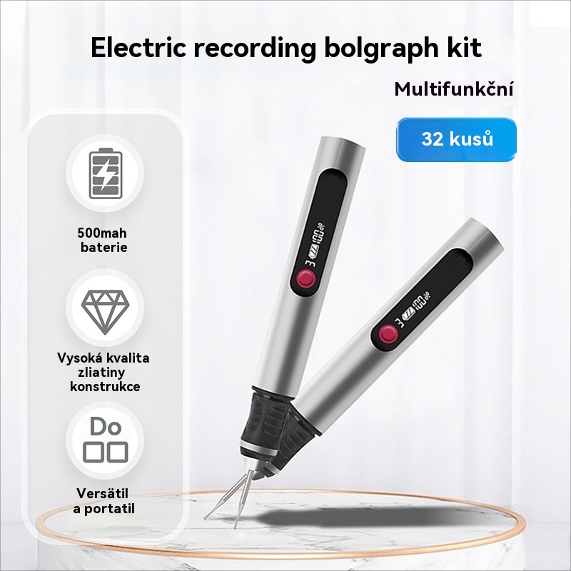 Dlouhotrvající dobíjecí lithium-iontové multifunkční gravírovací pero pro zdobení nehtů a elektrické leštění