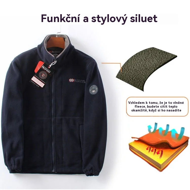 Pánská silná sametová fleecová bunda, podzim a zima, teplá, lehká, velká velikost