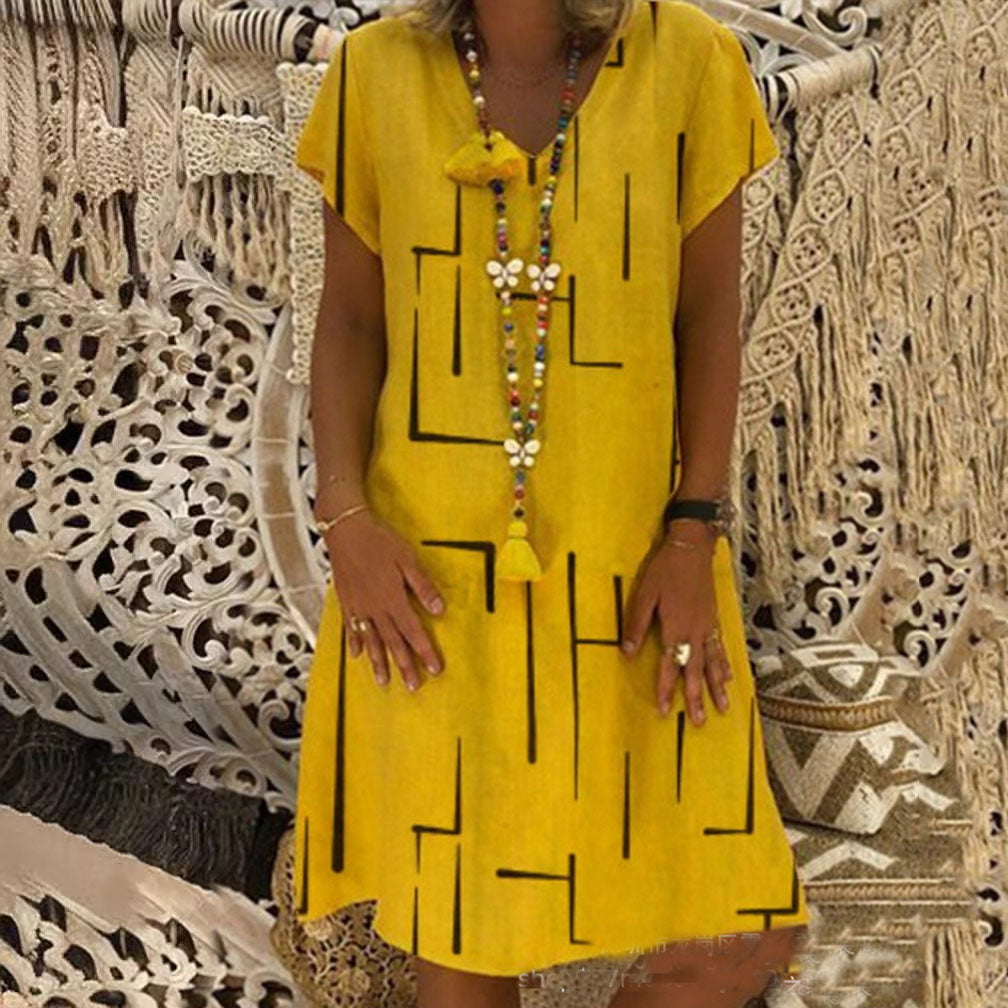 【🏆50% de descuento】 👗【S-5XL】Vestido de algodón estampado con cuello en V