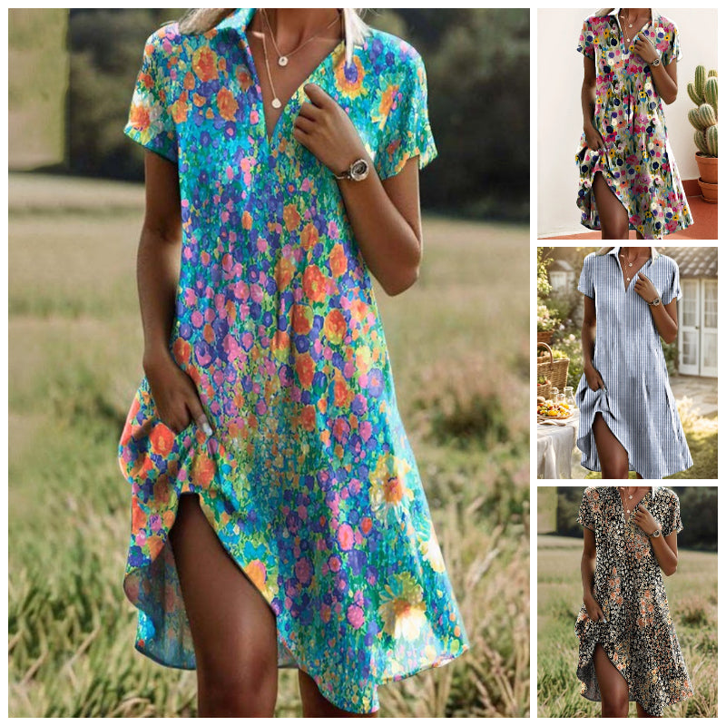 👗【Horúci výpredaj】✨ 2025 Letná nová dámska móda Šaty s krátkym rukávom a výstrihom do V Priedušný šifón