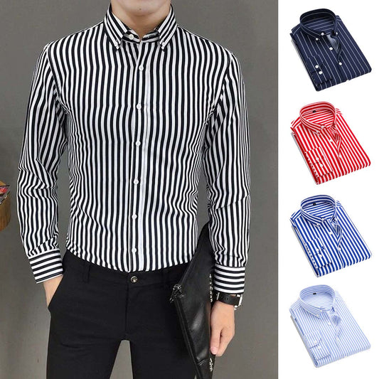 🔥👕【M-5XL】Pánska pruhovaná košeľa s dlhým rukávom v biznis štýle 2025