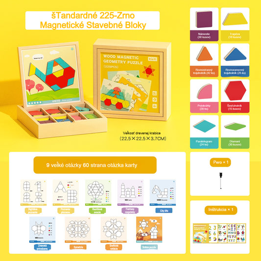 👶🌈🧩【225 dielikov】🔥Magnetické drevené Tangram puzzle, tréning mozgu a vzdelávacia hračka pre deti, stimuluje myslenie