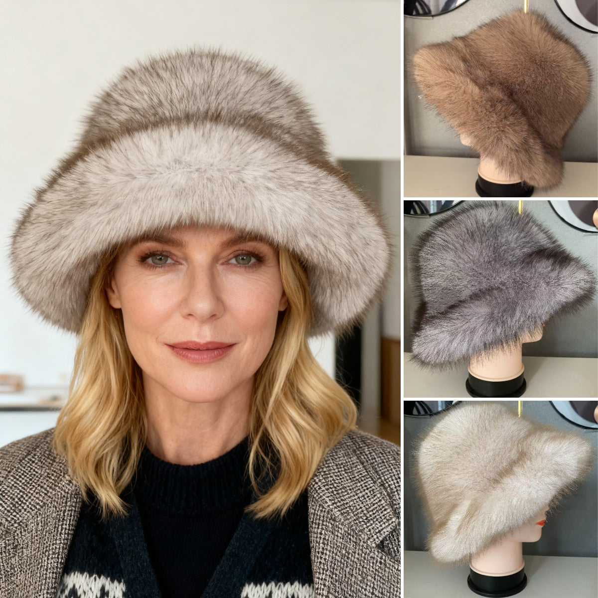 👒Zľava -47%🔥 Dámska teplá jesenná a zimná čiapka s veľkou krempou a kopulou z líšky
