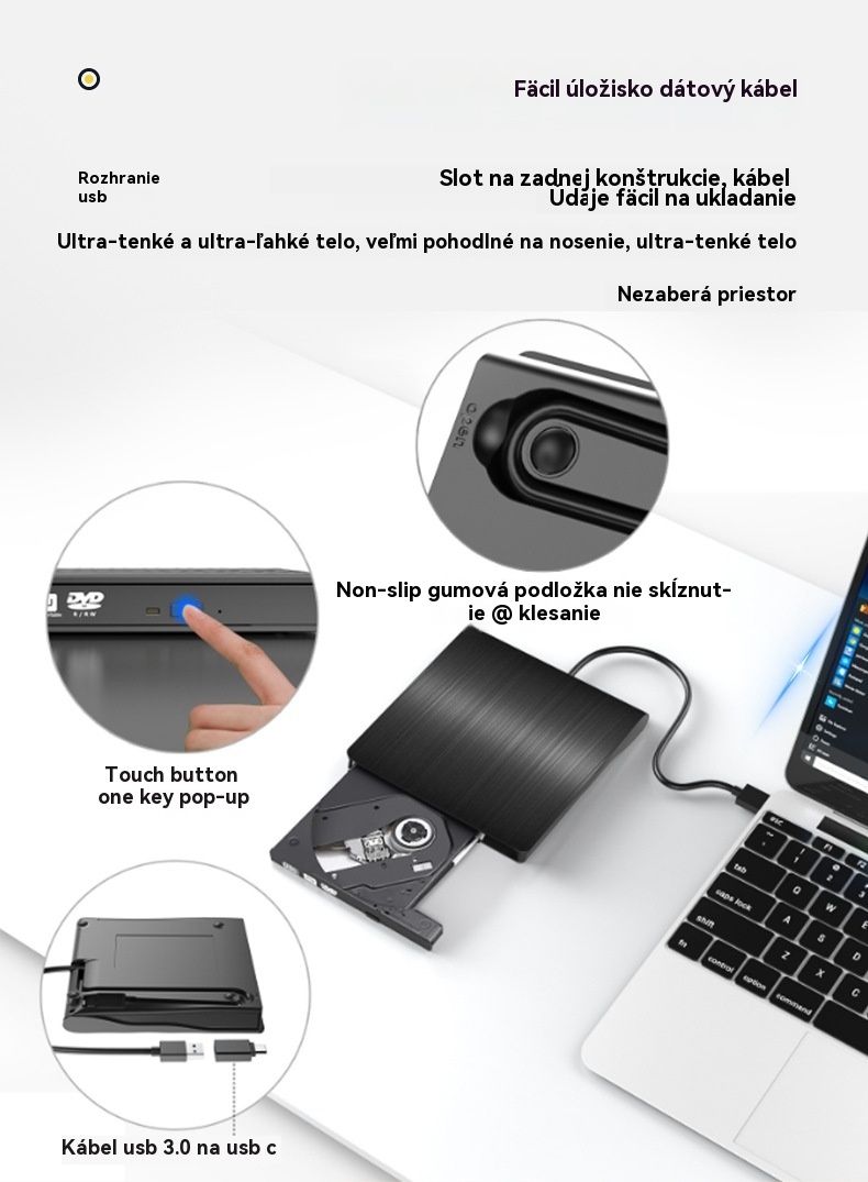 📢📢50% zľava! 💿💻 Externá CD/DVD mechanika – Plug and play, prenosná a ľahko použiteľná, kompatibilná so systémami Mac/Windows.