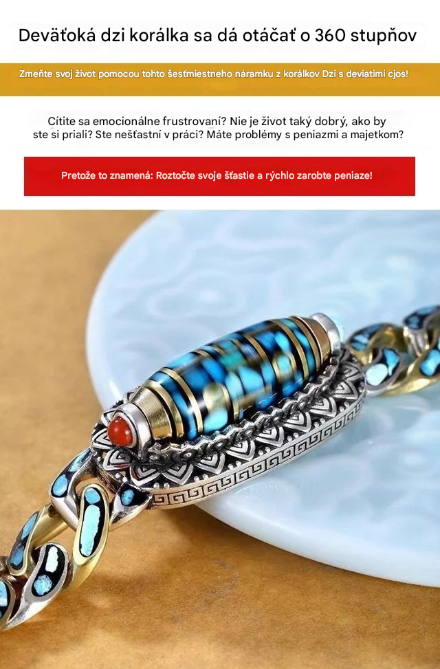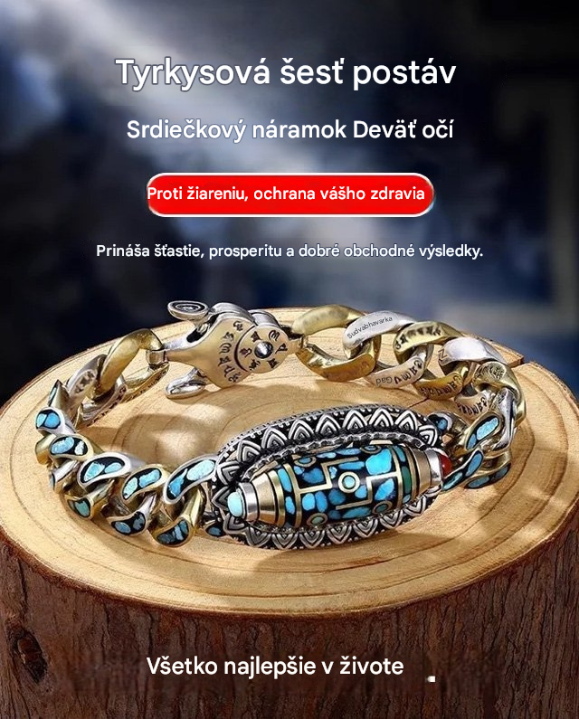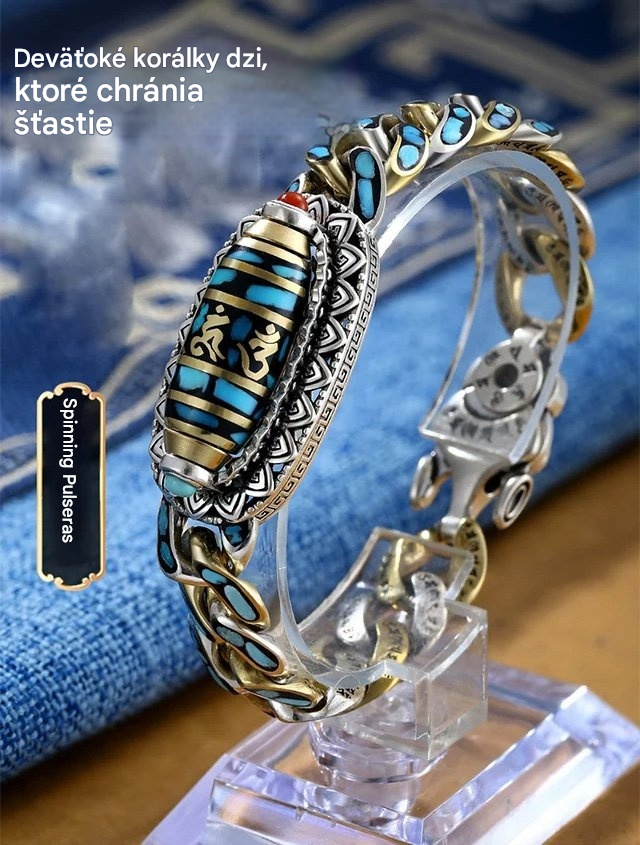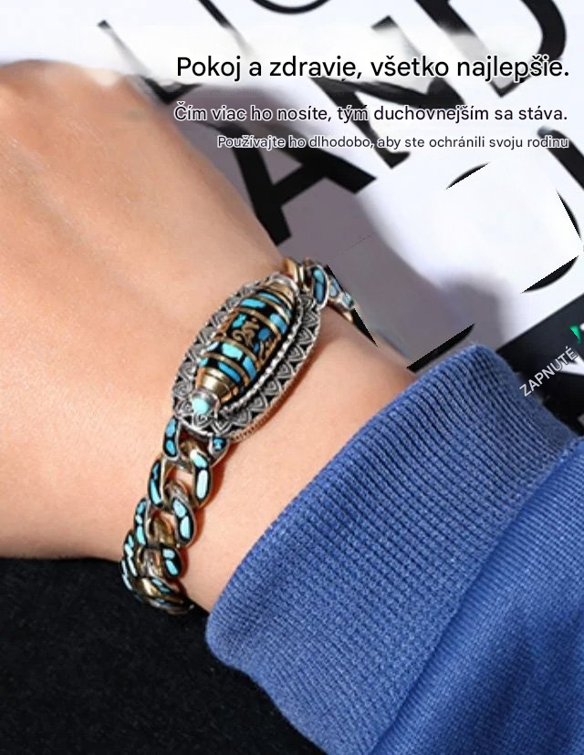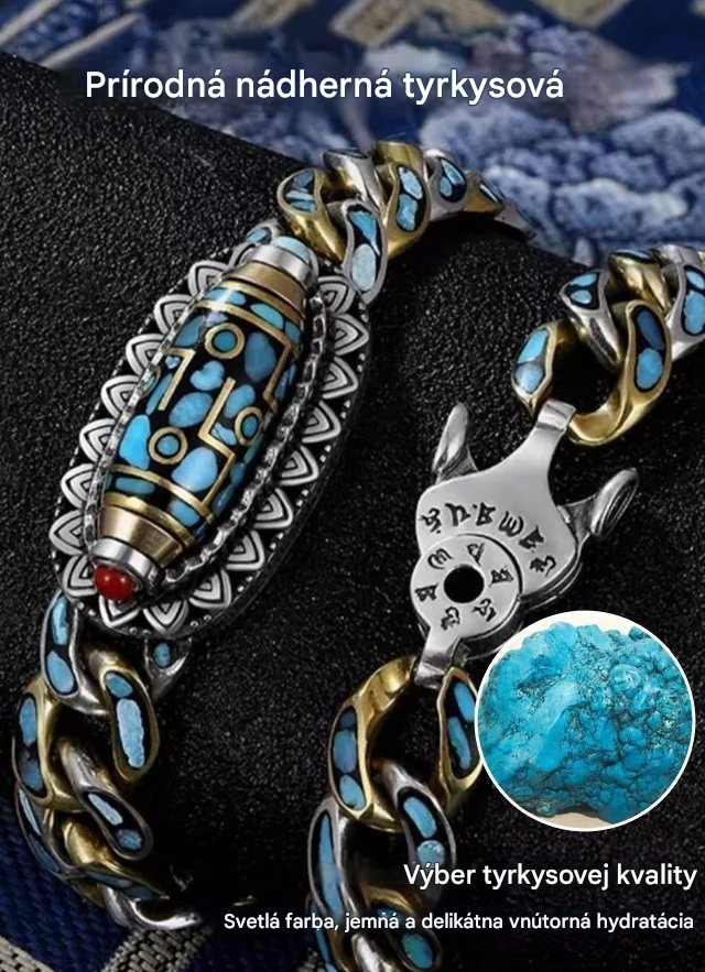🔥Kúpte 1 a získajte 1 zadarmo, 2 položky✨ Retro náramok z mincového striebra 925 s tyrkysovou mantrou a šiestimi číslicami s prenosnými korálkami