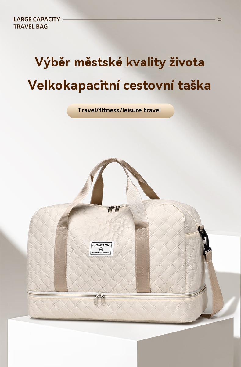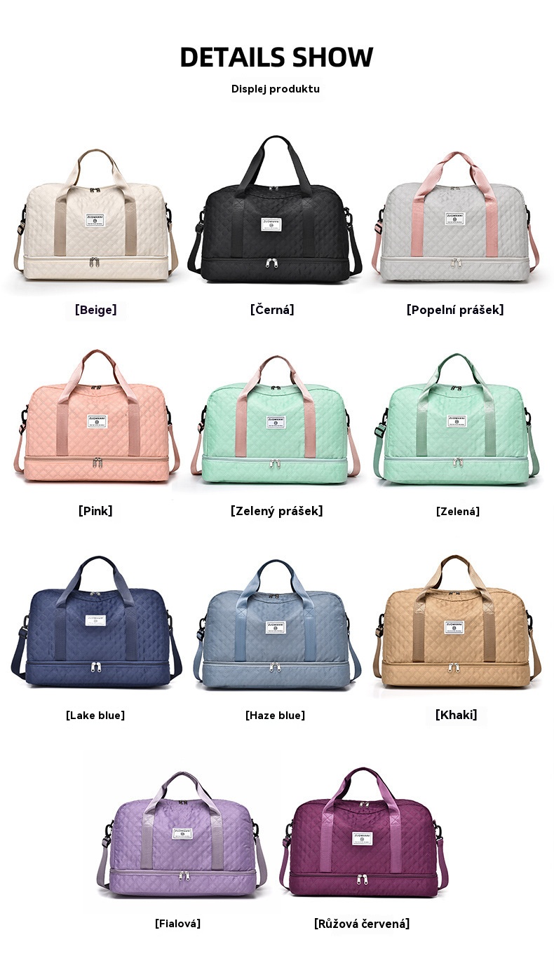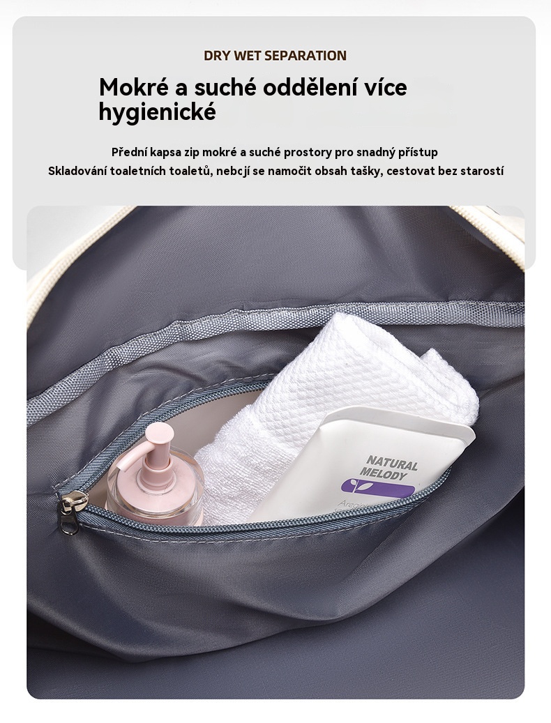 🔥Táto elegantná cestovná taška má veľkú kapacitu a samostatné priehradky na suché a mokré veci, vďaka čomu je vhodná na jogu a fitness aktivity.