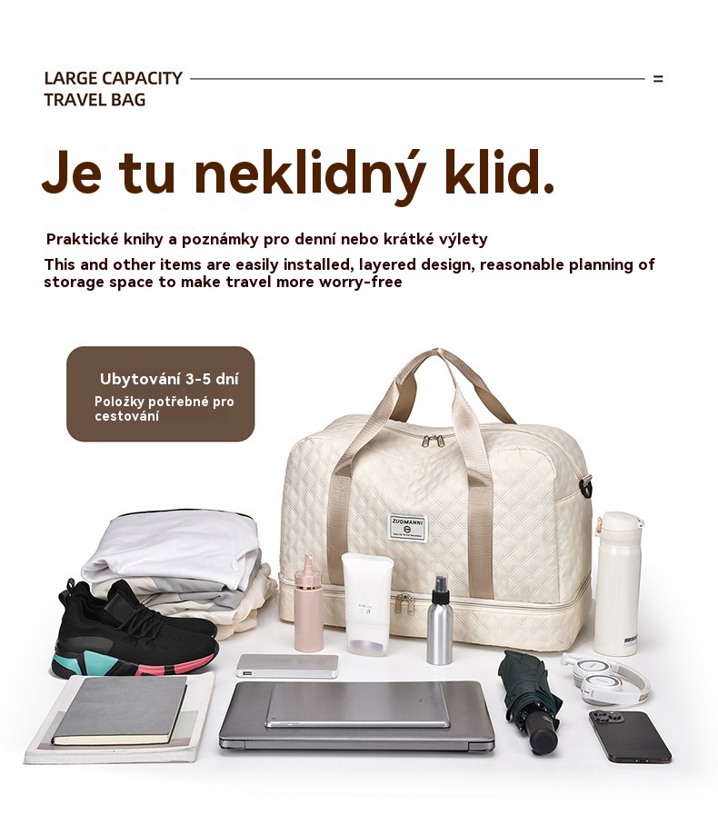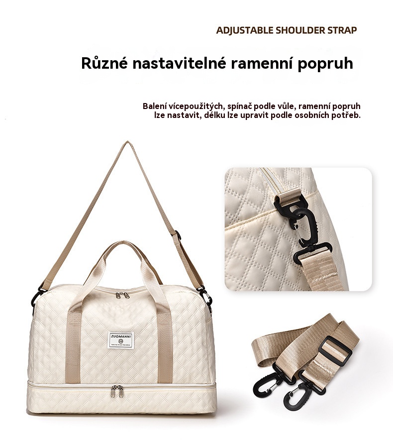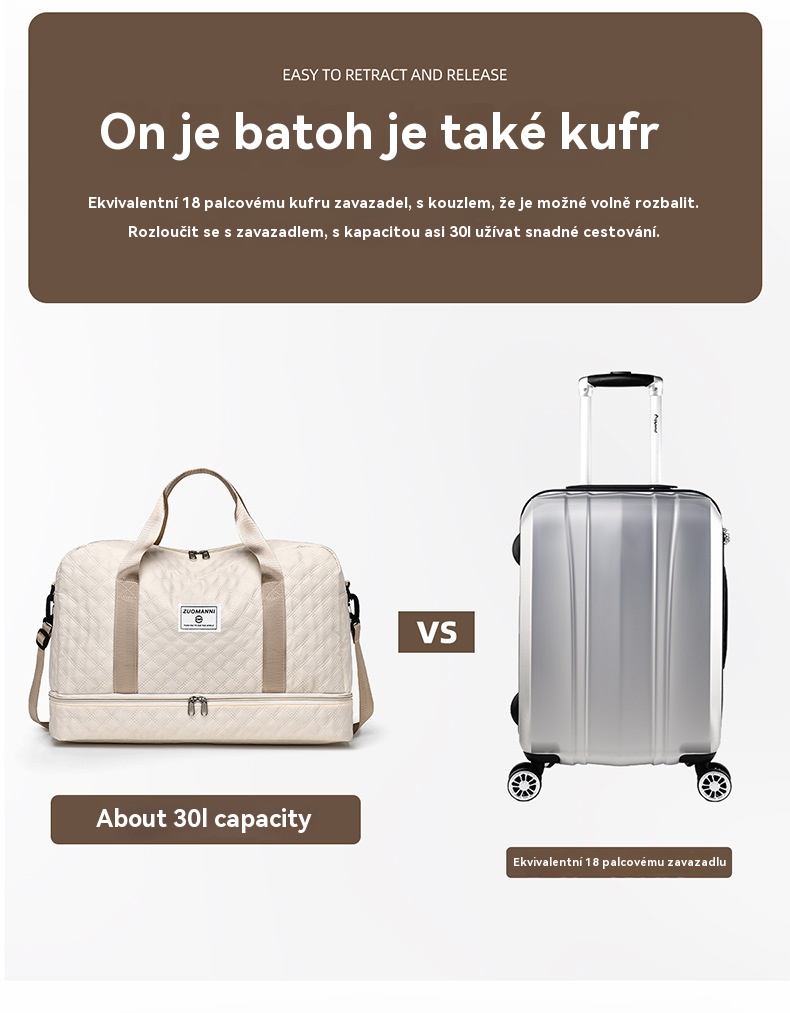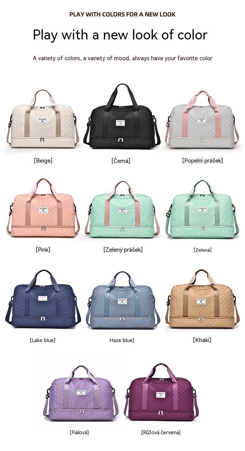 🔥Táto elegantná cestovná taška má veľkú kapacitu a samostatné priehradky na suché a mokré veci, vďaka čomu je vhodná na jogu a fitness aktivity.