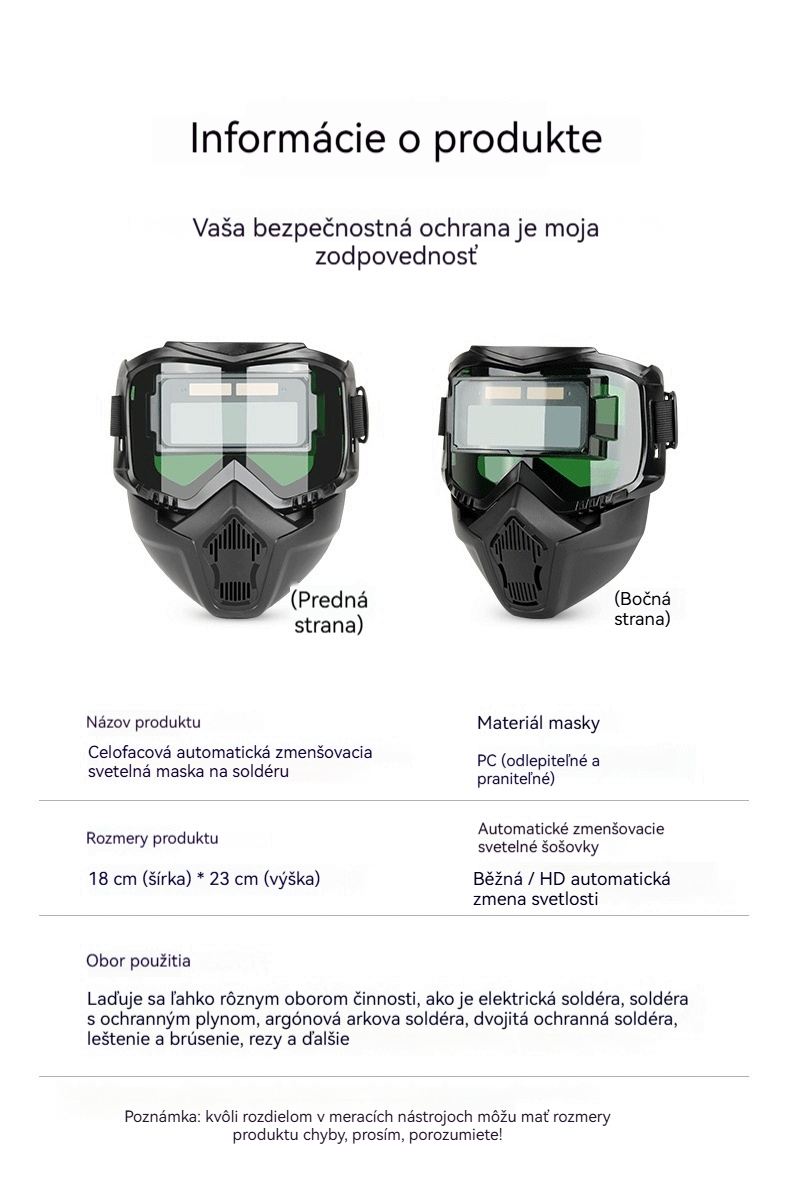 😎 Plne automatická svačicová prilba s ochrannou maskou a hlavnou svetelnou zmenou pre svačičov