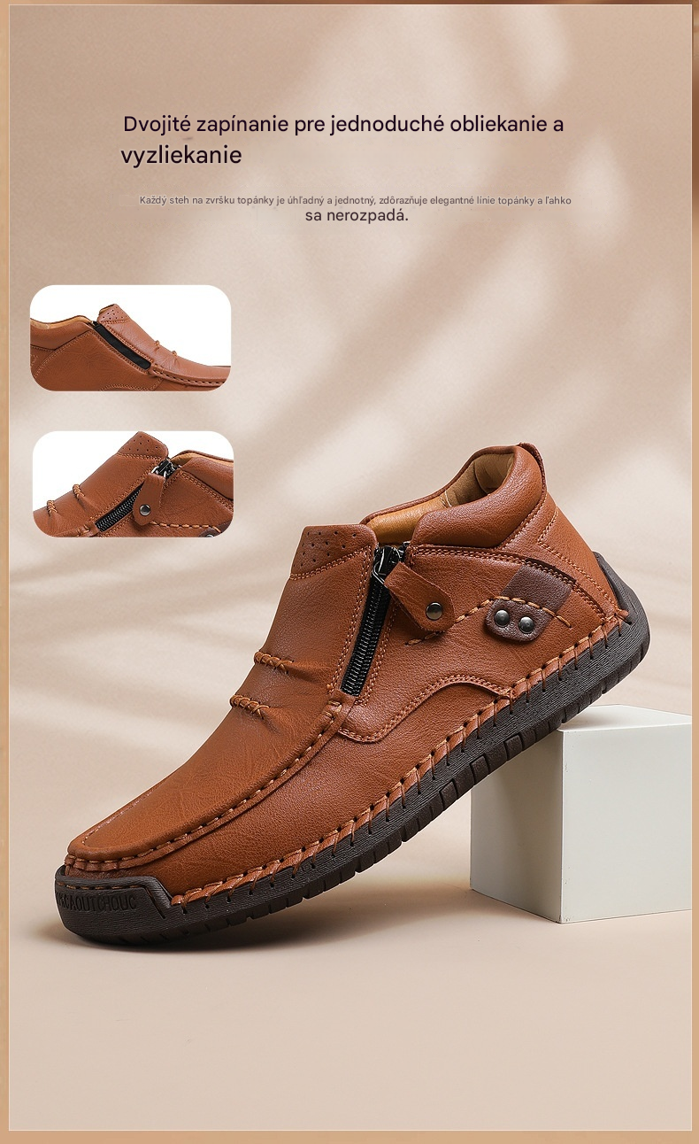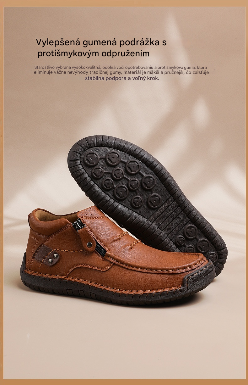 【38-48】Pánske ručne vyrobené kožené nazúvacie topánky na šoférovanie - široká špička, podpora klenby