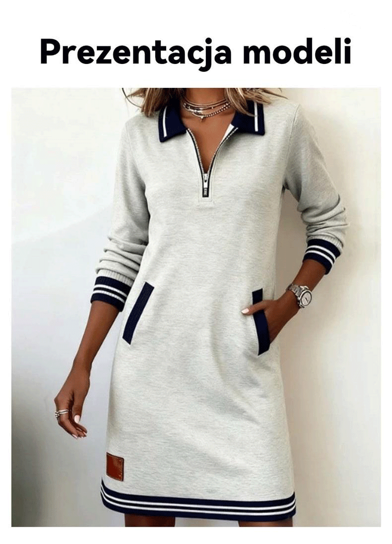 Zimná, nová, volná sukňa s bleskom, krakom, dlhými rukávmi a vreckami v jednolijskom farbe